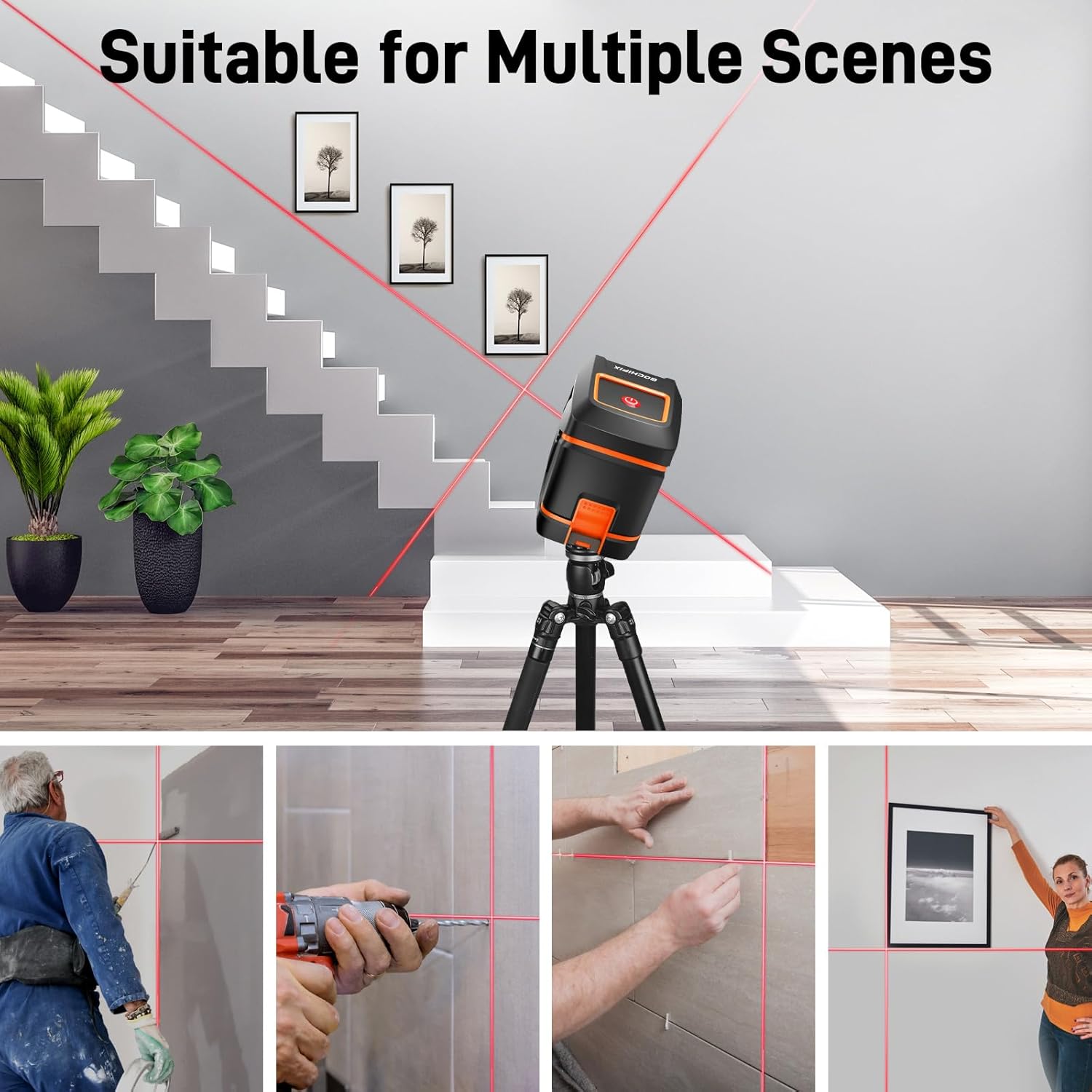 【Self-Leveling Laser Level】Automatically levelling within ±4° in 5s. Exceeds 4°, alarm sounds.Manual mode to multi-angle lock line