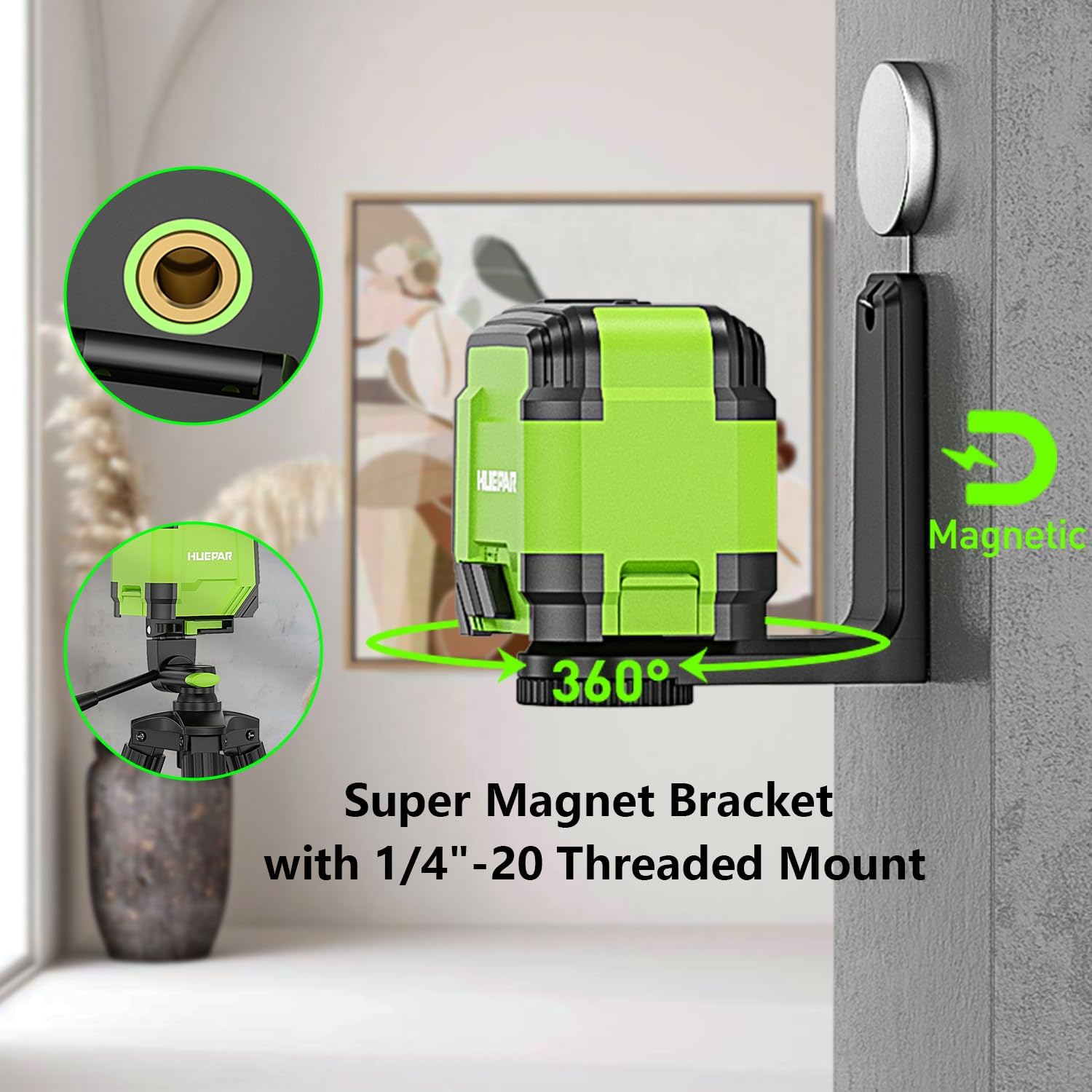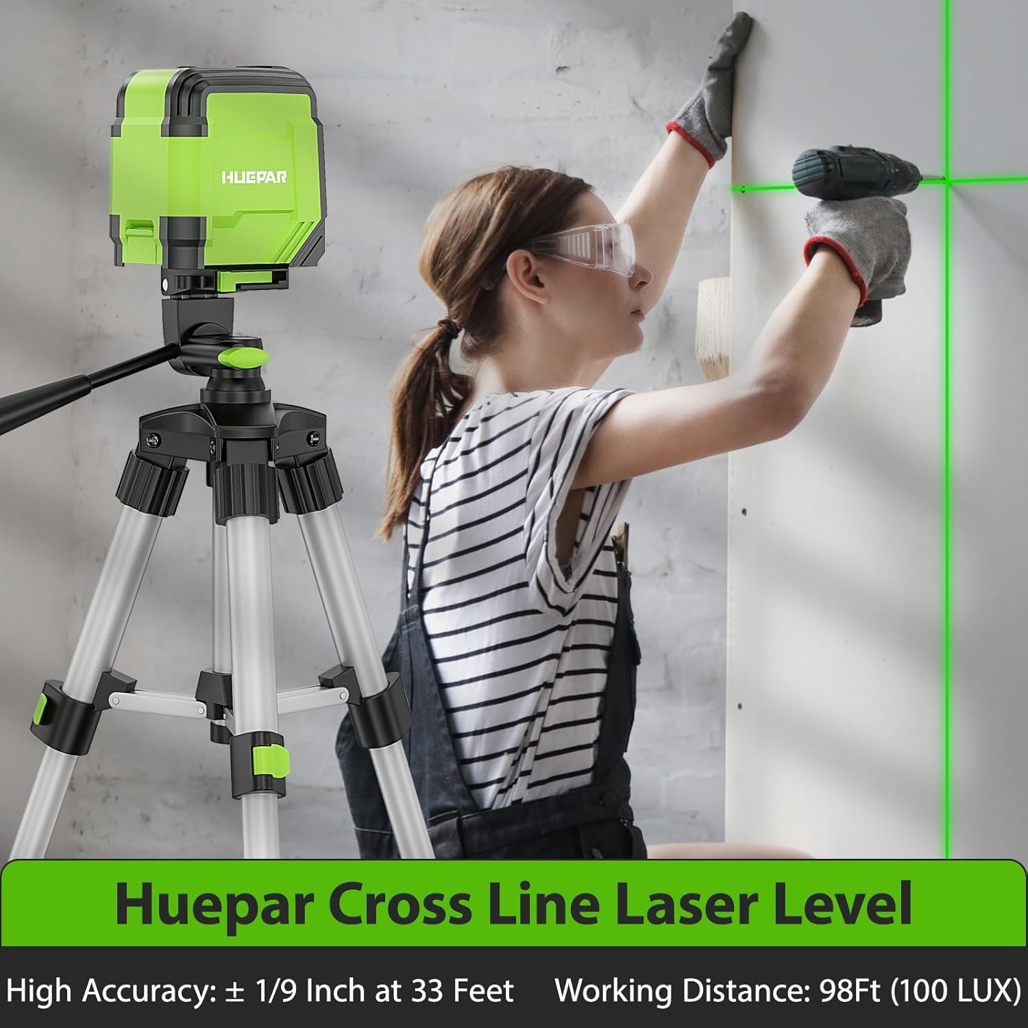 【Advanced Laser Technology & Exceptional Accuracy】Huepar laser level tool incorporates cutting-edge Osram green laser technology, delivering a bright and dependable beam. With ±1/9-inch accuracy at 33 feet, this lazer level ensures precise measurements. Its brightness and high accuracy make it a top choice laser level for picture hanging, construction indoor projects, DIY, and more. Plus, its working distance of up to 98 feet offers versatility for various jobs.