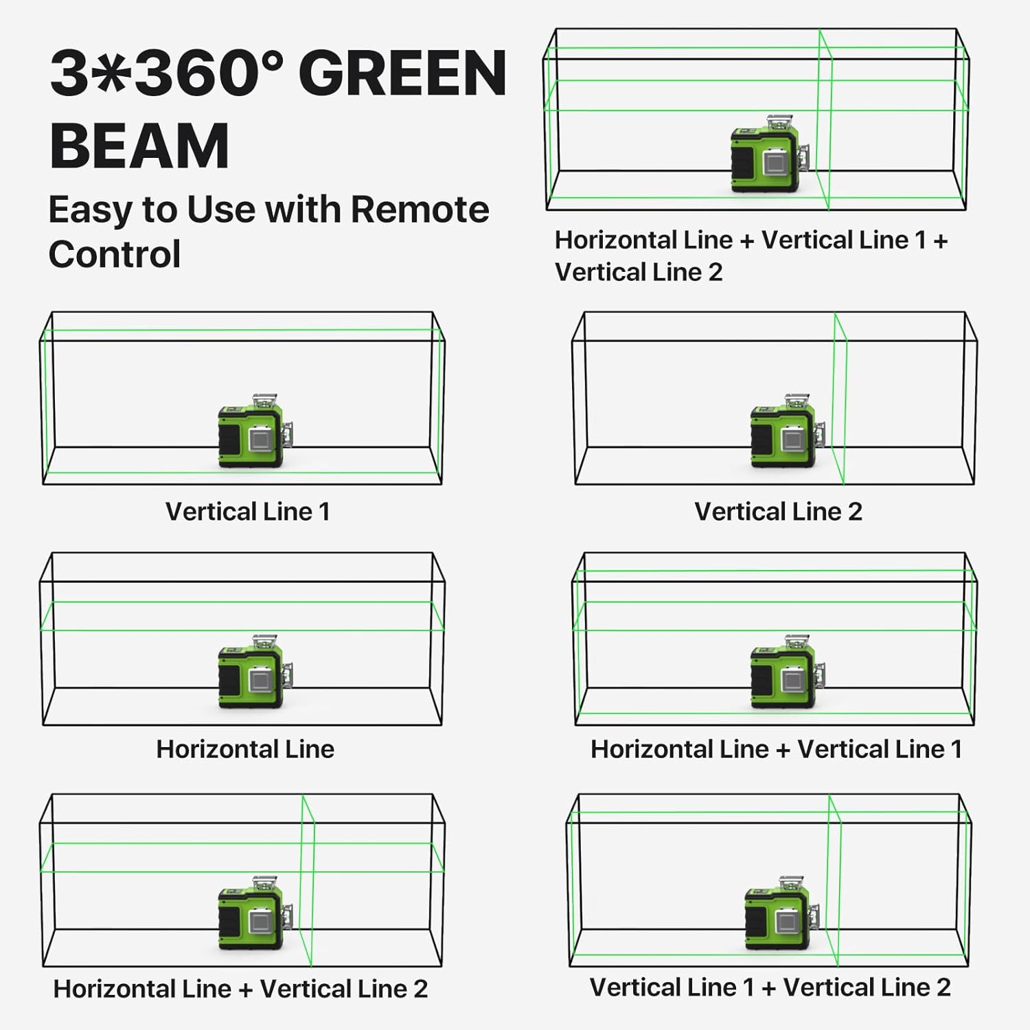 Durable Quality & Package Includes: IP54 waterproof, dustproof, the whole body is made of high-quality plastic and covered with rubber protection, each laser head outside the laser window is made of aluminum, to better protect each laser head, and the package comes with a L-shaped magnetic bracket, can be installed in any way you want to The package includes: laser level, lithium-ion battery, battery charger, remote,magnetic bracket, USB power cable,user manual.