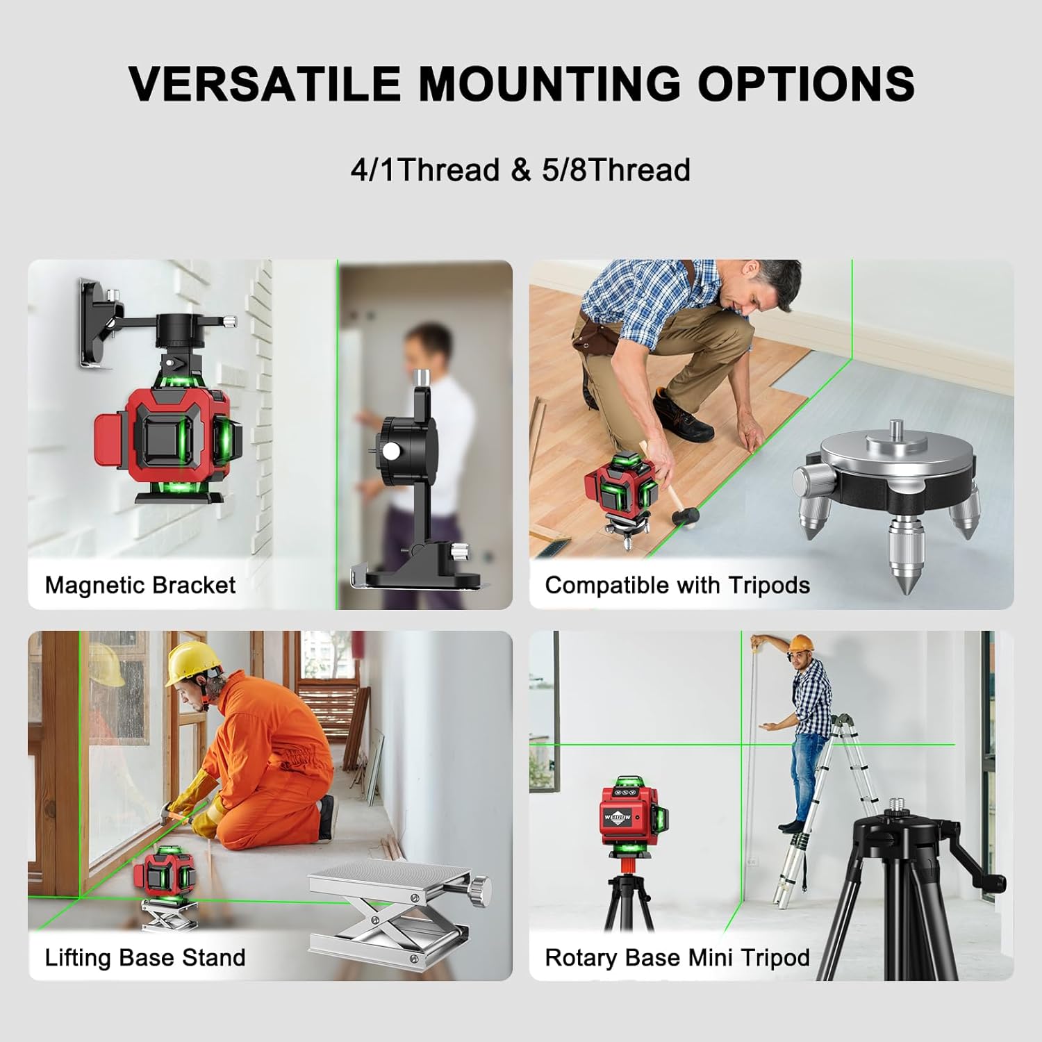 🔎 Self-Leveling Function:Our laser level boasts advanced features such as a self-leveling function, multiple mounting options, and a long-distance projection range, making it an essential tool for any project.this laser level ensures that your lines are perfectly straight and level. No more wasting time on manual adjustments or using bubble levels. Simply set up the laser level, and it will automatically adjust to provide accurate measurements.