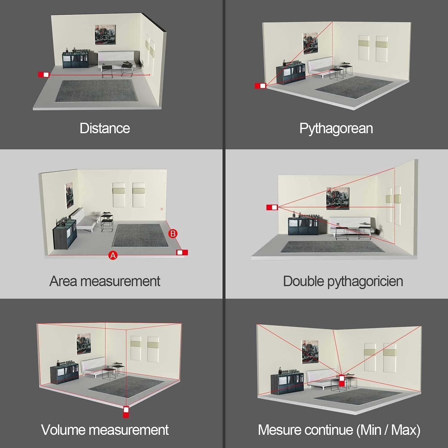 Multipurpose Functionality: More than just a distance measurer, this laser distance measurement tool offers a comprehensive suite of features, including min/max, addition/subtraction, area, and volume calculations, and a Pythagoras function. It’s a compact and versatile solution to replace a multitude of separate digital measurement tools.