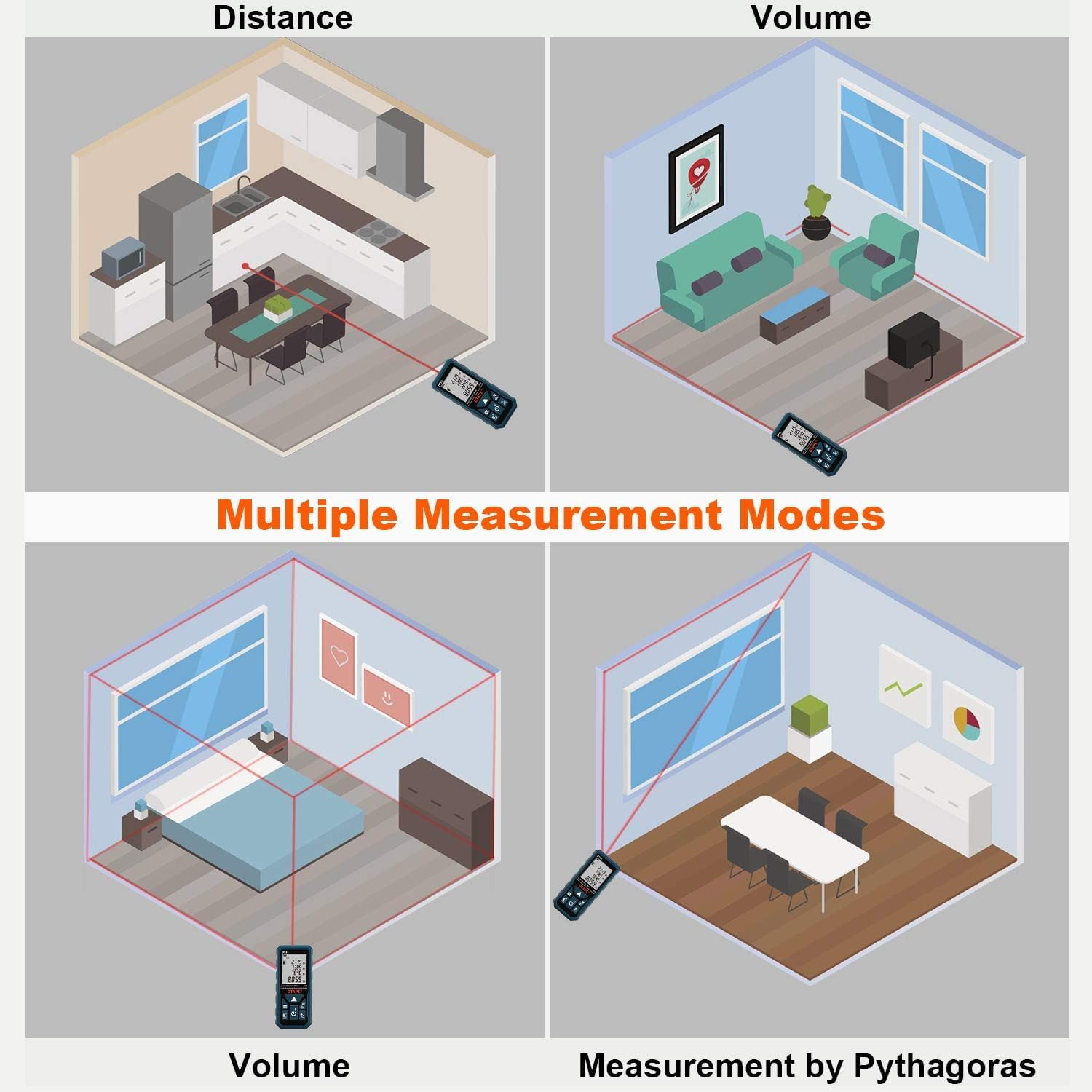 Swift and Efficient: Streamline your work process with measurements delivered in as quick as 0.5 seconds. This laser measuring tool is a game-changer for carpenters, realtors, landscapers, painters, or anyone needing fast and accurate measurements of spaces such as houses, rooms, backyards, or construction sites.