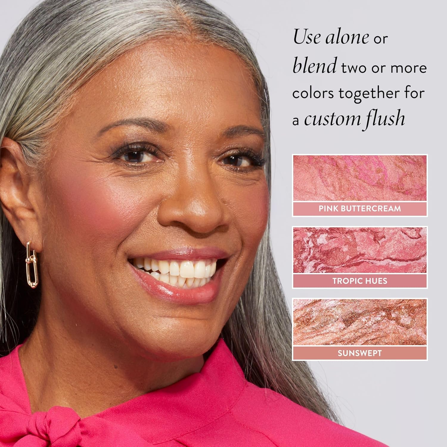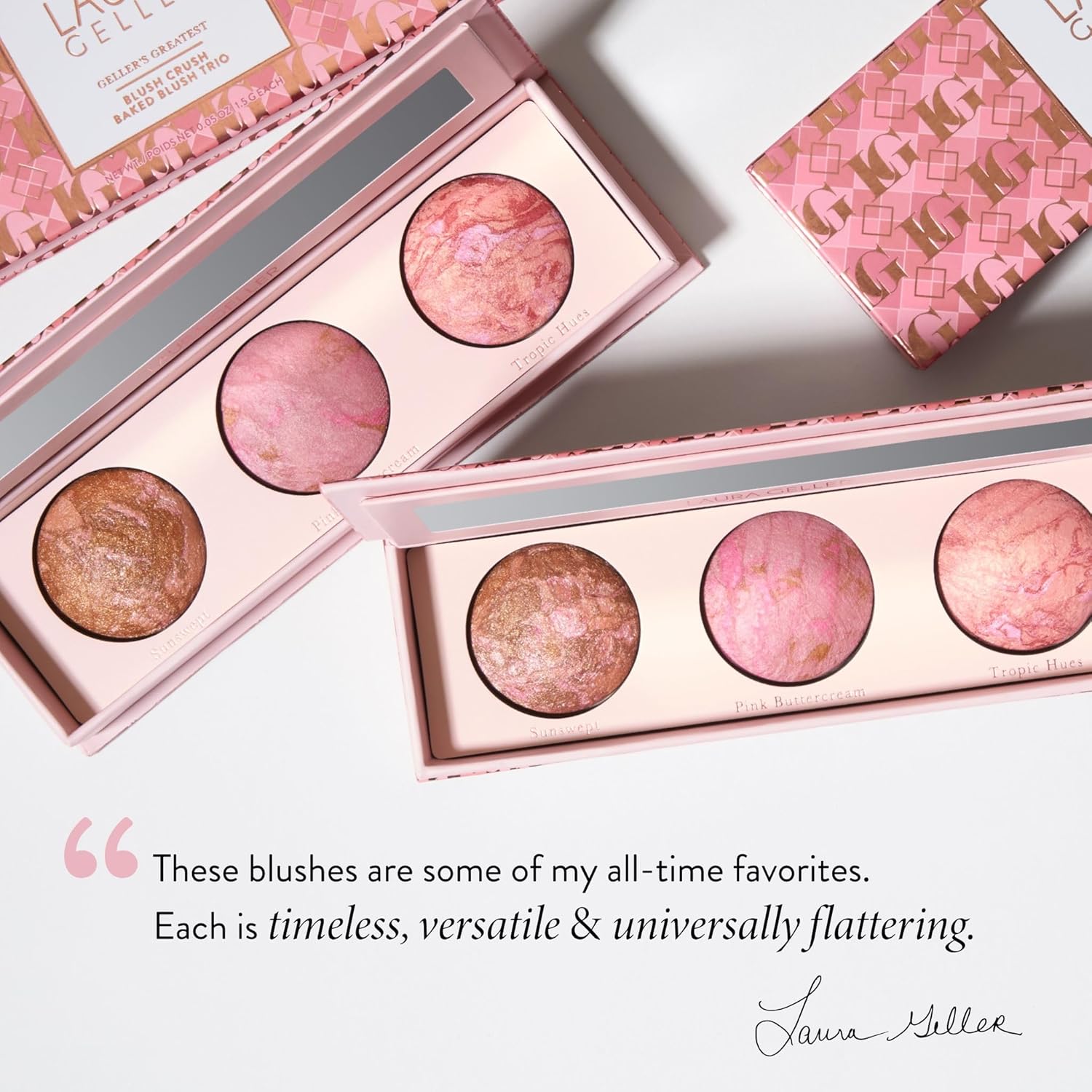 LAURA GELLER NEW YORK Geller’s Greatest Blush Crush Baked Blush Trio – Sunswept, Pink Buttercream, Tropic Hues – Blush-n-Brighten Marbleized Blush Palette – All Skin Tones