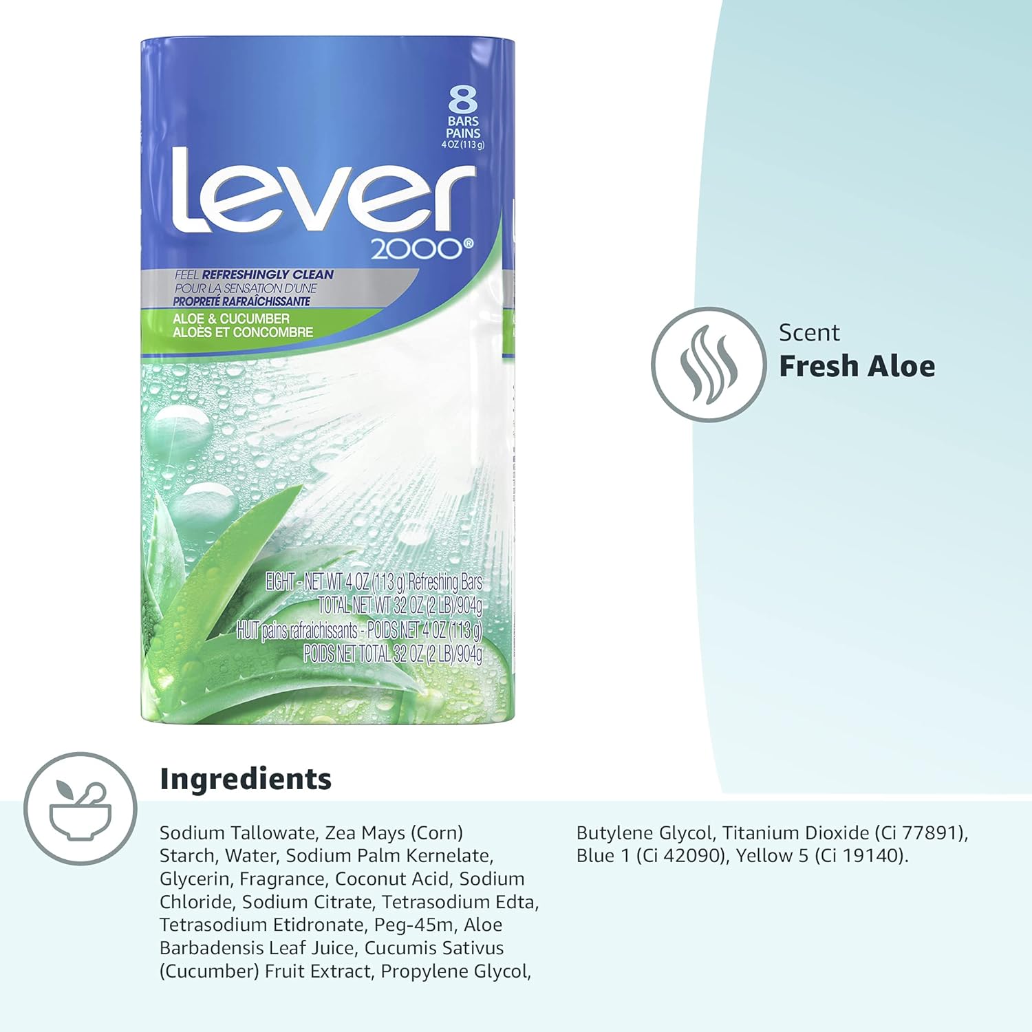 Lever 2000 Refreshing Body Soap and Facial Cleanser With Aloe & Cucumber Effectively Washes Away Bacteria, Fresh Aloe, 4 Ounce (Pack of 8)