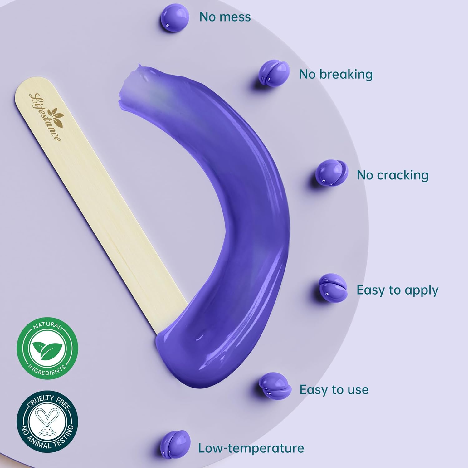 👶𝗦𝘂𝗶𝘁𝗮𝗯𝗹𝗲 𝗳𝗼𝗿 𝗔𝗹𝗹 𝗪𝗮𝘅𝗶𝗻𝗴 𝗟𝗲𝘃𝗲𝗹𝘀: Whether you’re a beginner or an experienced waxer, Lifestance Lavender Wax Beads offer an easy and efficient waxing process. Catering to all skill levels, our wax beads ensure a satisfactory and hassle-free experience for everyone.