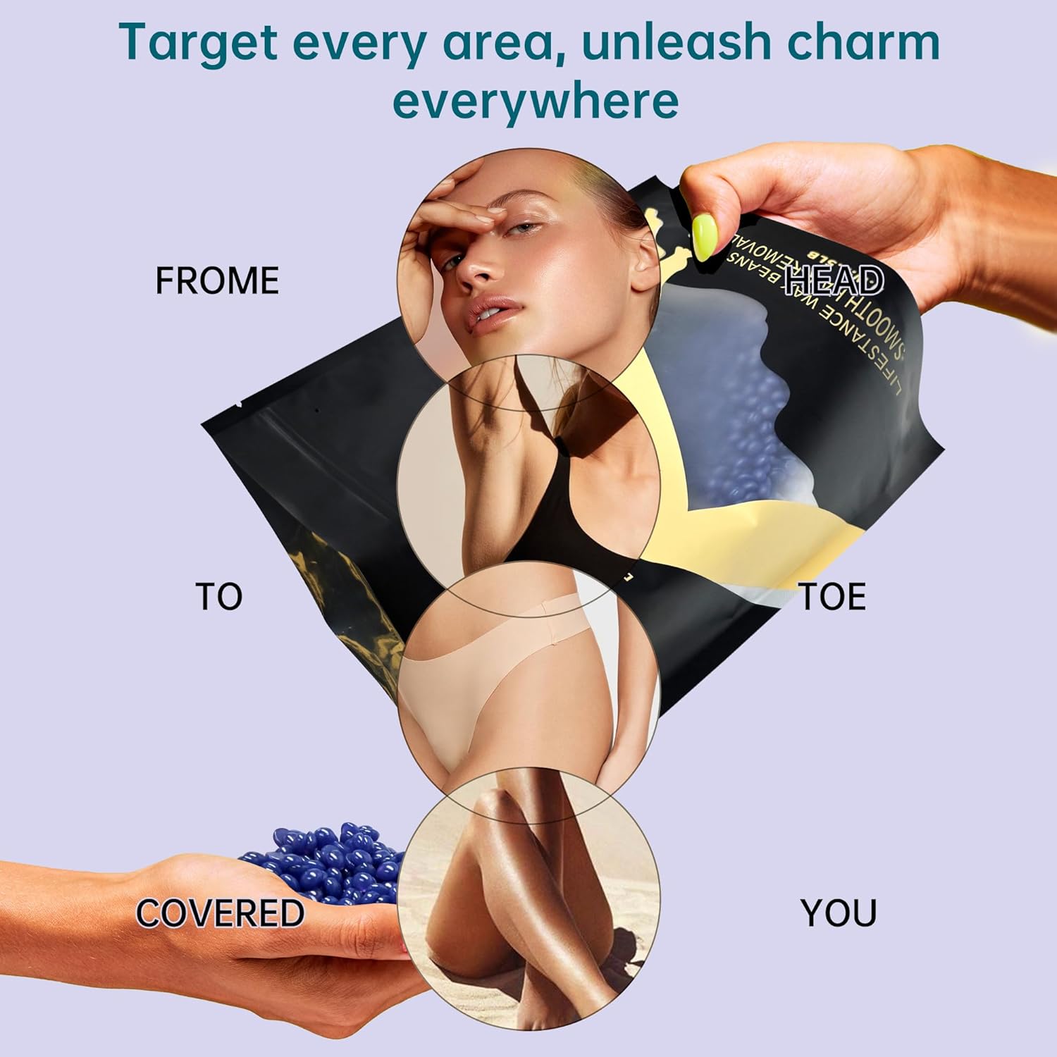 💪𝗘𝗳𝗳𝗲𝗰𝘁𝗶𝘃𝗲 𝗛𝗮𝗶𝗿 𝗥𝗲𝗺𝗼𝘃𝗮𝗹 𝗔𝗰𝗿𝗼𝘀𝘀 𝗠𝘂𝗹𝘁𝗶𝗽𝗹𝗲 𝗕𝗼𝗱𝘆 𝗣𝗮𝗿𝘁𝘀: Lifestance Lavender Wax Beads are expertly crafted to effectively remove coarse and stubborn hair from various body areas, including Brazilian & bikini, legs, and body. Whether it’s a Brazilian or bikini waxing session, our formula ensures a smooth, long-lasting result, reducing the need for frequent waxing sessions.