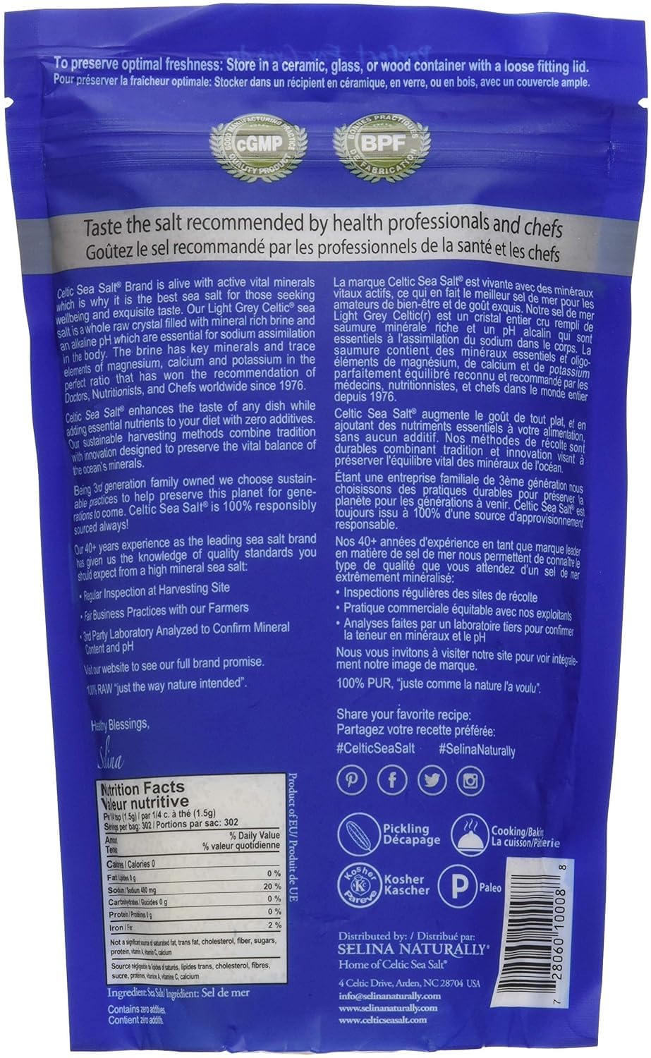 Light Grey Celtic Sea Salt 1 Pound Resealable Bag – Additive-Free, Delicious Sea Salt, Perfect for Cooking, Baking and More – Gluten-Free, Non-GMO Verified, Kosher and Paleo-Friendly