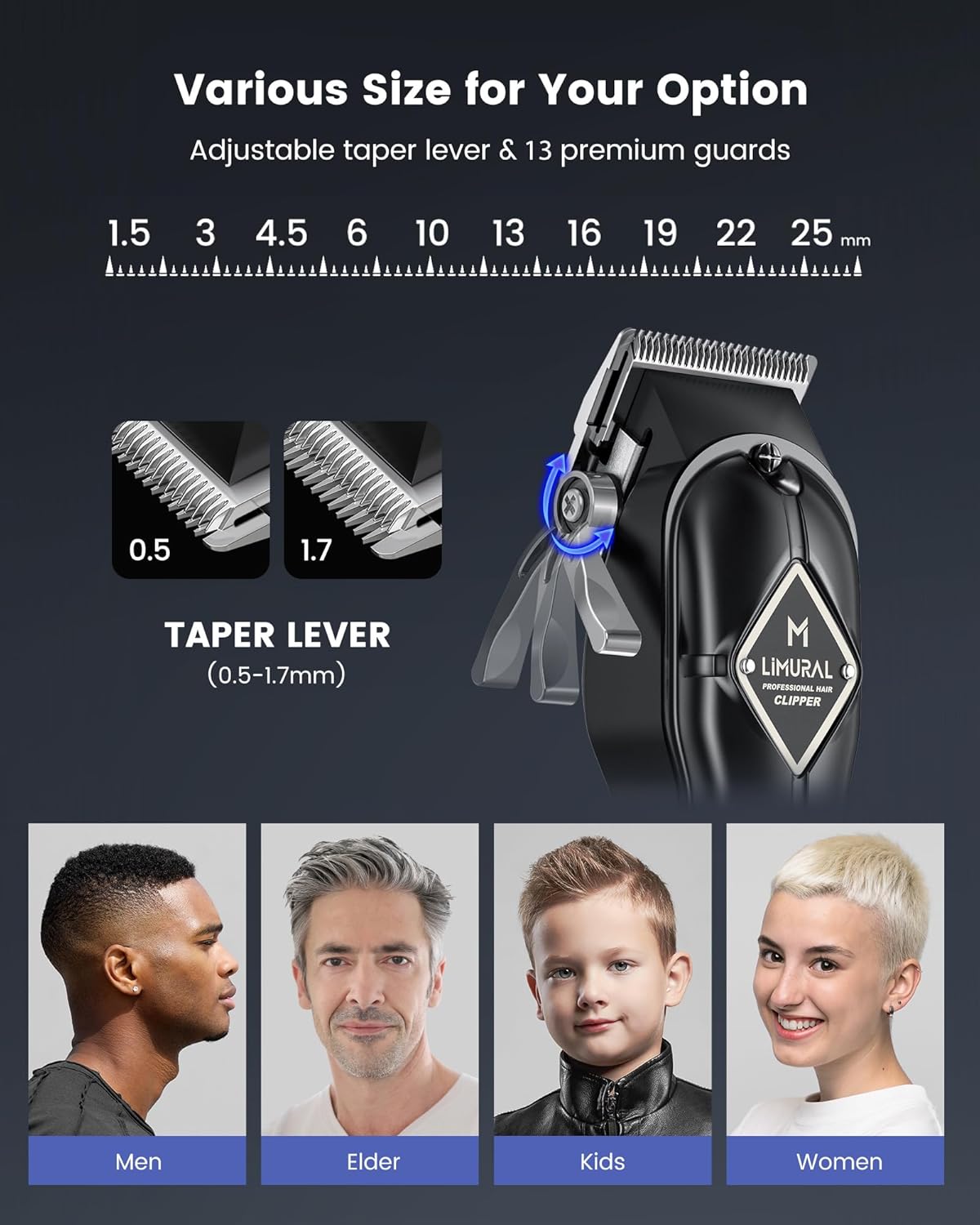 Limural Hair Clippers and Trimmer Combo – Professional Barber Fade Clipper + Zero Gap T Blade Edgers, Complete Beard Grooming Shaving Kit for Men with 13 Fade Taper Combs & 6500 RPM Motor