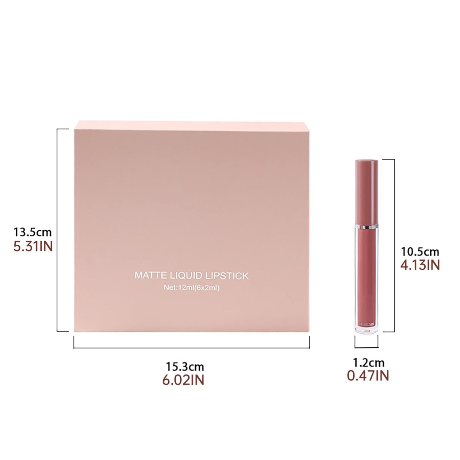 Lipstick Matte Lipstick Liquid Makeup Set, 6Pcs Long-Lasting Wear Non-Stick Cup Not Fade Waterproof Velvet Lip Gloss Kit, Lip Makeup Gift Sets for Girls and Women LL-9 (B, One Size)