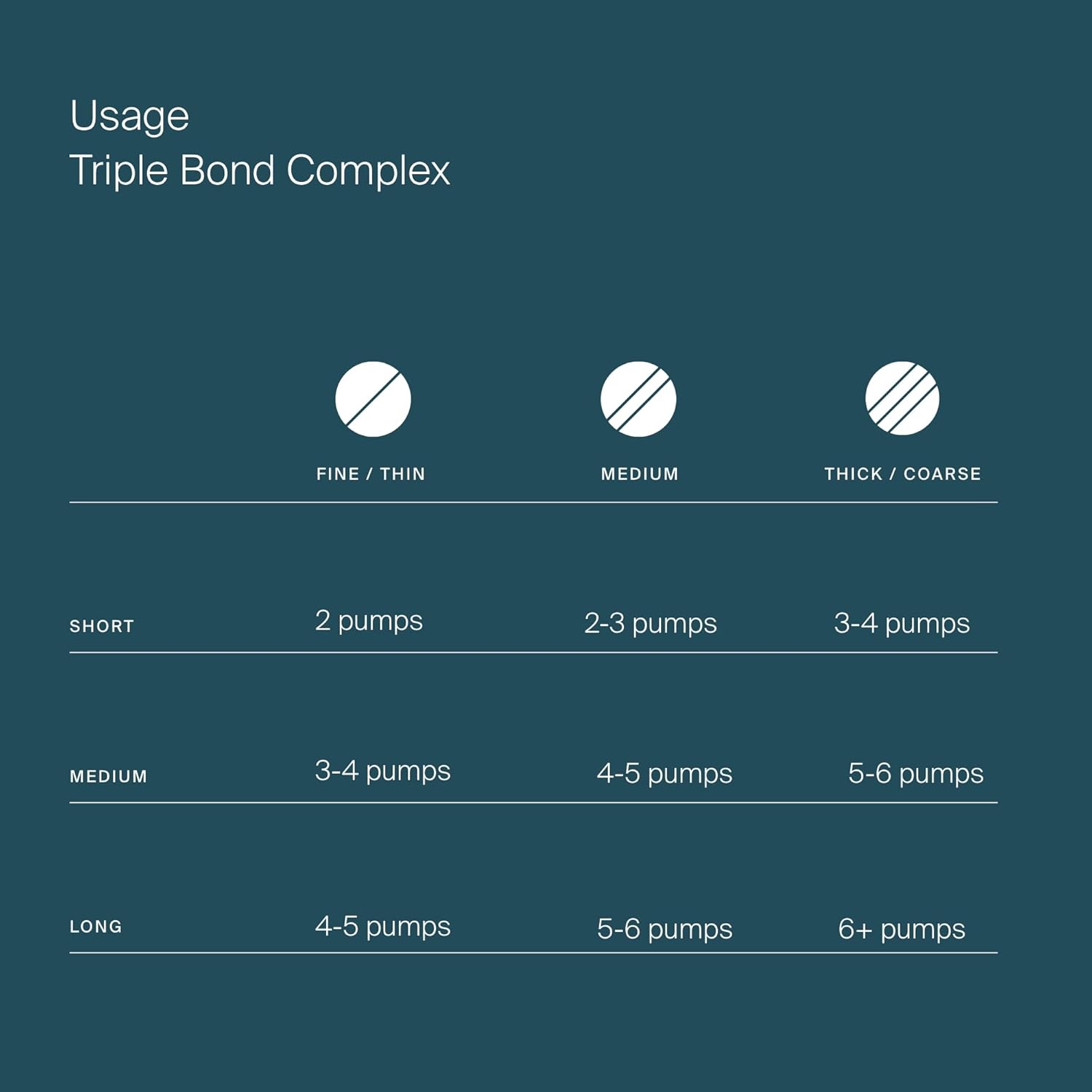 The average use per application is 2-5 pumps depending on hair length, density & damage. It is recommended to start with 2 pumps and add more as needed. We recommend that you use Triple Bond Complex weekly.