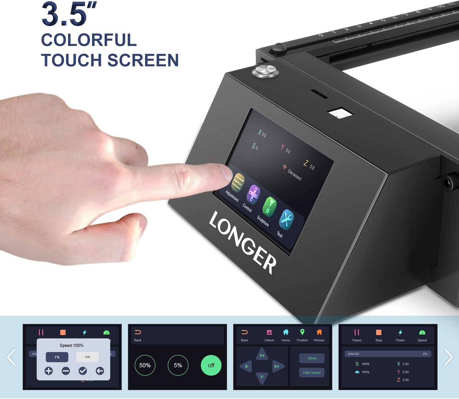 [Touch screen and offline engraving] 3.5-inch smart color screen, so you can easily meet various DIY needs. Built-in controller, no need to connect the laser engraving machine with computer. Just save the file to TF card, Ray5 will engrave or cut according to the program you set, use Ray5 anytime and anywhere.