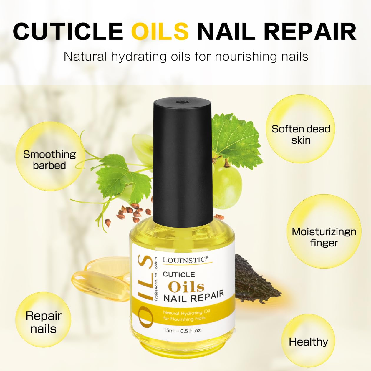 LOUINSTIC CUTICLE OIL AND LIQUID LATEX FOR NAILS: Contains nail latex tape 0.5oz, cuticle care oil 0.5oz, This is a brand new set designed for nail art design. Peel off latex tape for the cuticle guard and nail polish skin protector. Cuticle Oil is for nourishing and repairing to promote stronger and healthier nails.