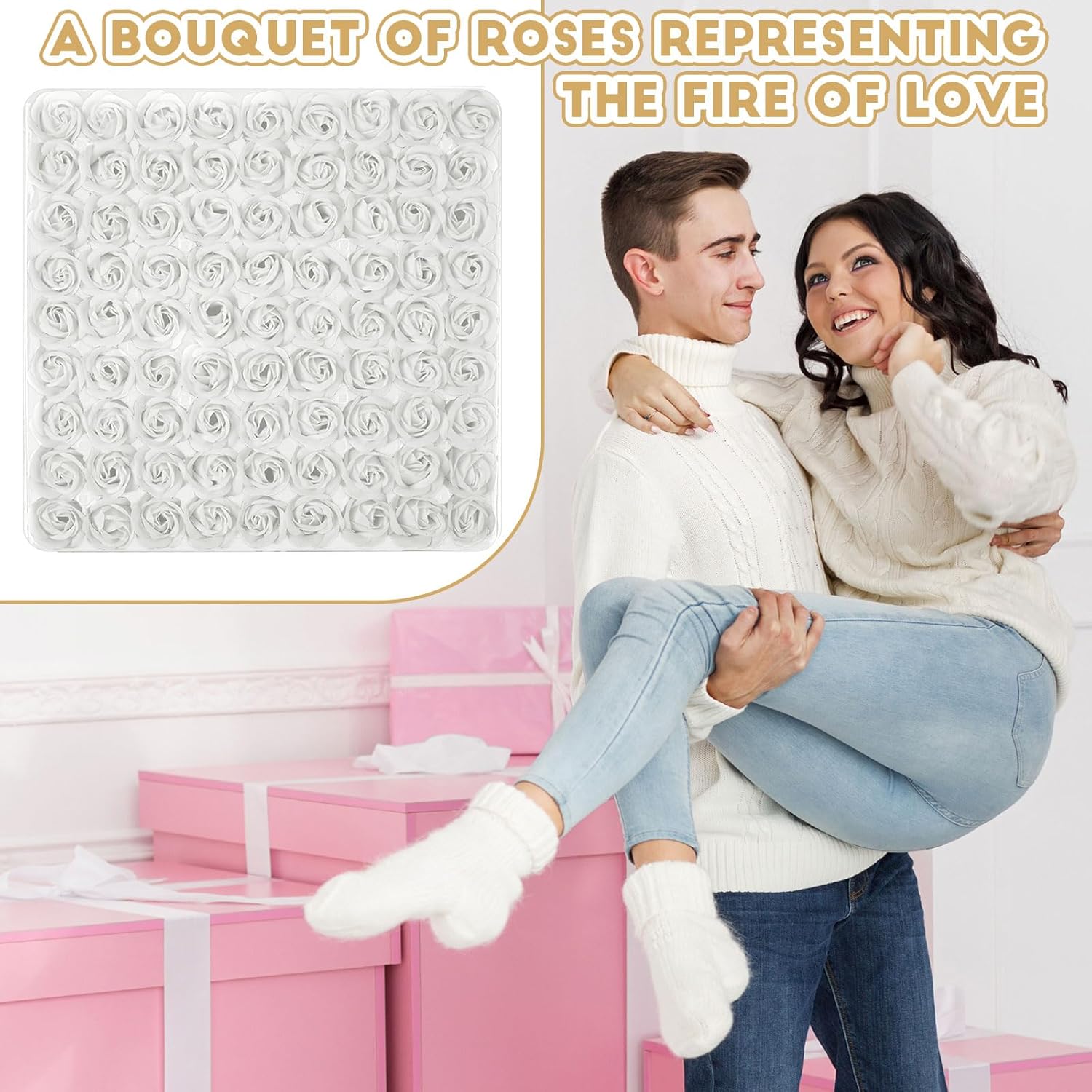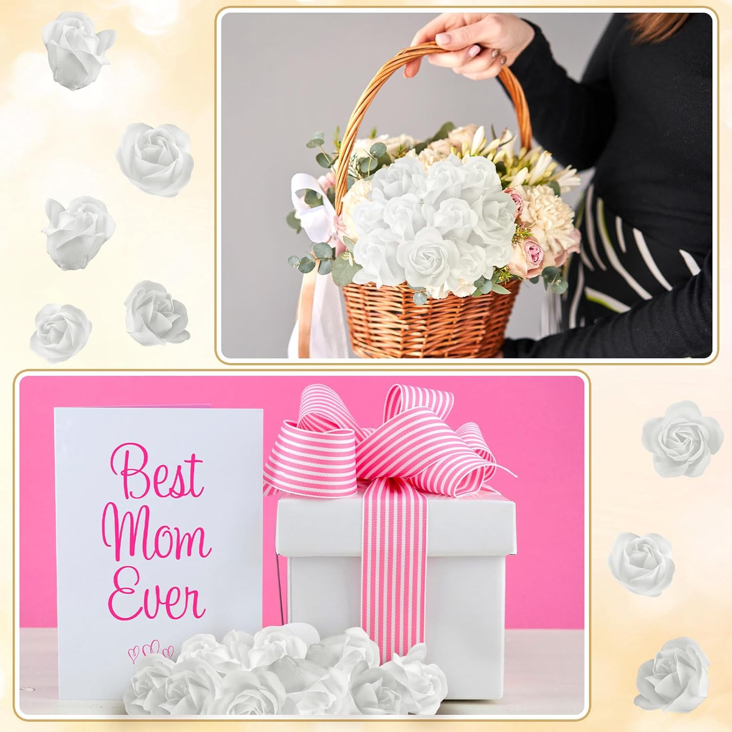 Lounsweer 162 Pcs Rose Flower Soap Floral Bath Soap Floral Scented Rose Petal Bouquet Flower Soap Rose Petals Body Soap for Mother’s Day Wedding Birthday Baby Shower (White)