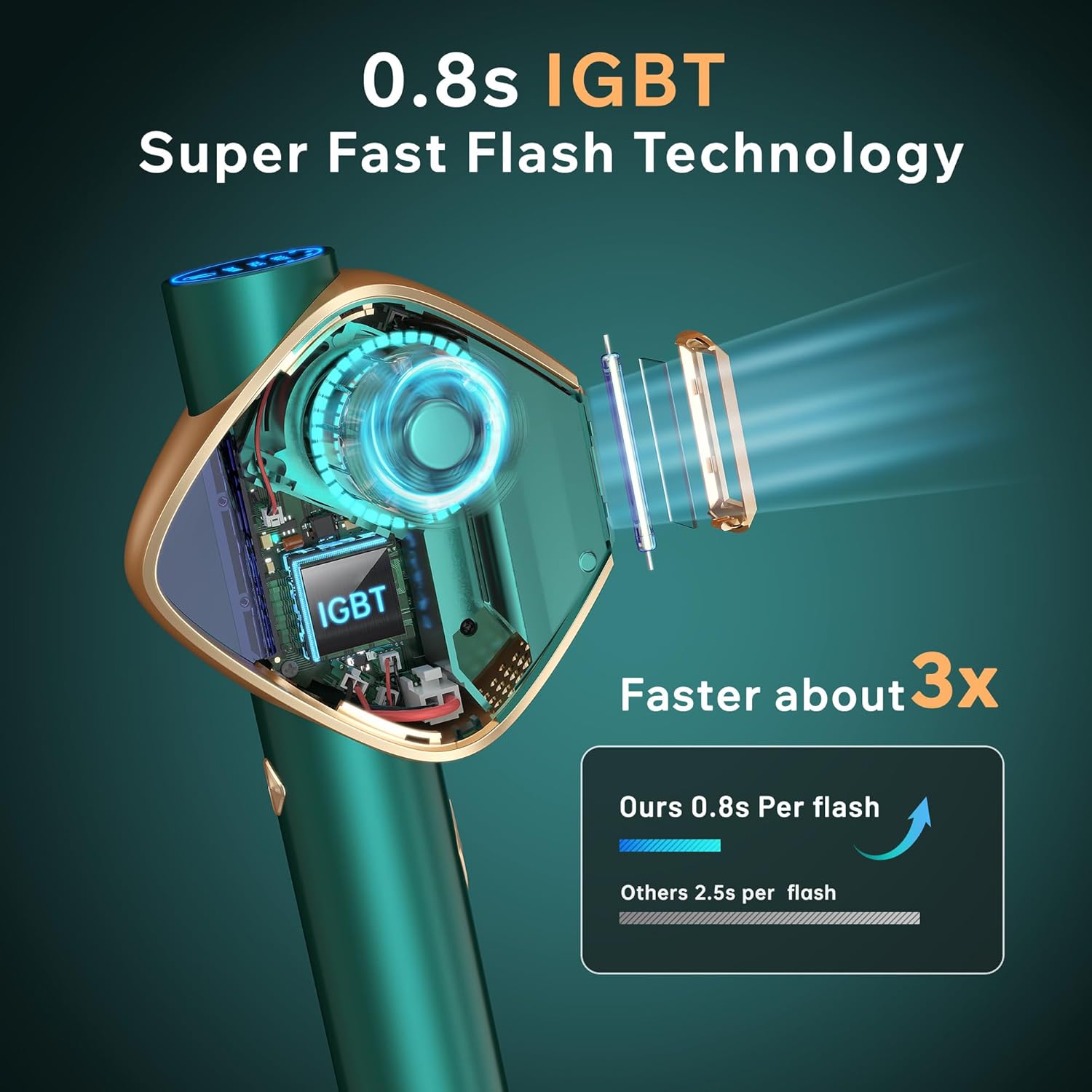 【0.8s Fast Flash】: The first to transition new energy automobile industrial grade IGBT control technology to the home hair removal device. Realize 0.8S fast flash and ensure high and stable flash energy each time, whole body hair removal in just 8 minutes far more than the industry average of 25 minutes. This technique let you can go out quickly and beautifully, and deal with all kinds of occasions with ease and confidence.