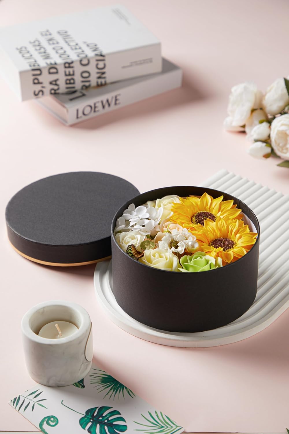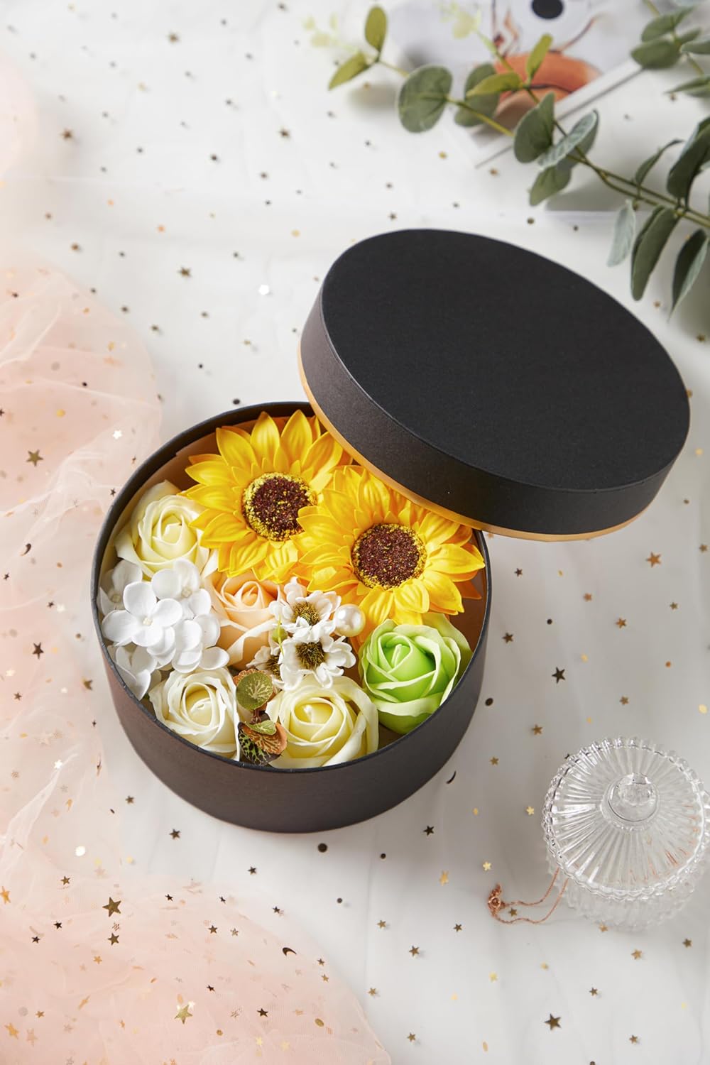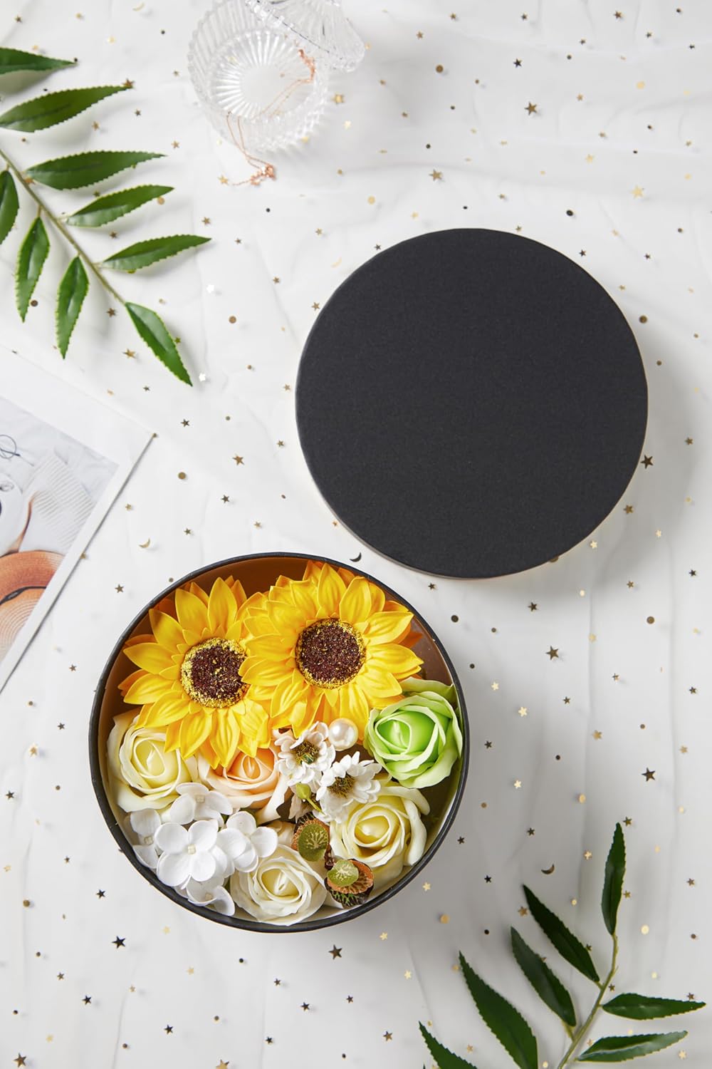 Luxury Beautiful Flora Scented Roses/Carnation Flower Bath Soap with Stem, Flower Soap in Gift Box, Gift for Birthday/Valentine’s Day/Mother’s Day (Sunflower)