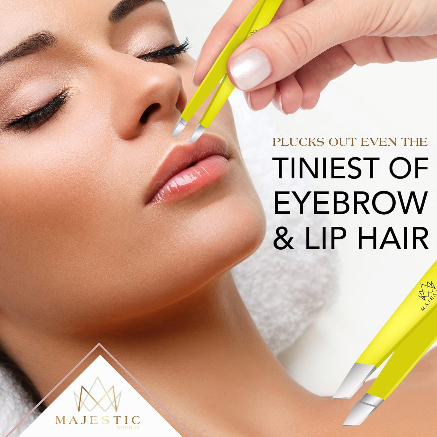 Majestic Bombay Fine Point + Slant Tweezers for Women and Men – Splinter Ticks, Facial, Brow and Ingrown Hair Removal–Sharp, Needle Nose, Surgical Tweezers Precision best tweezers for chin hair