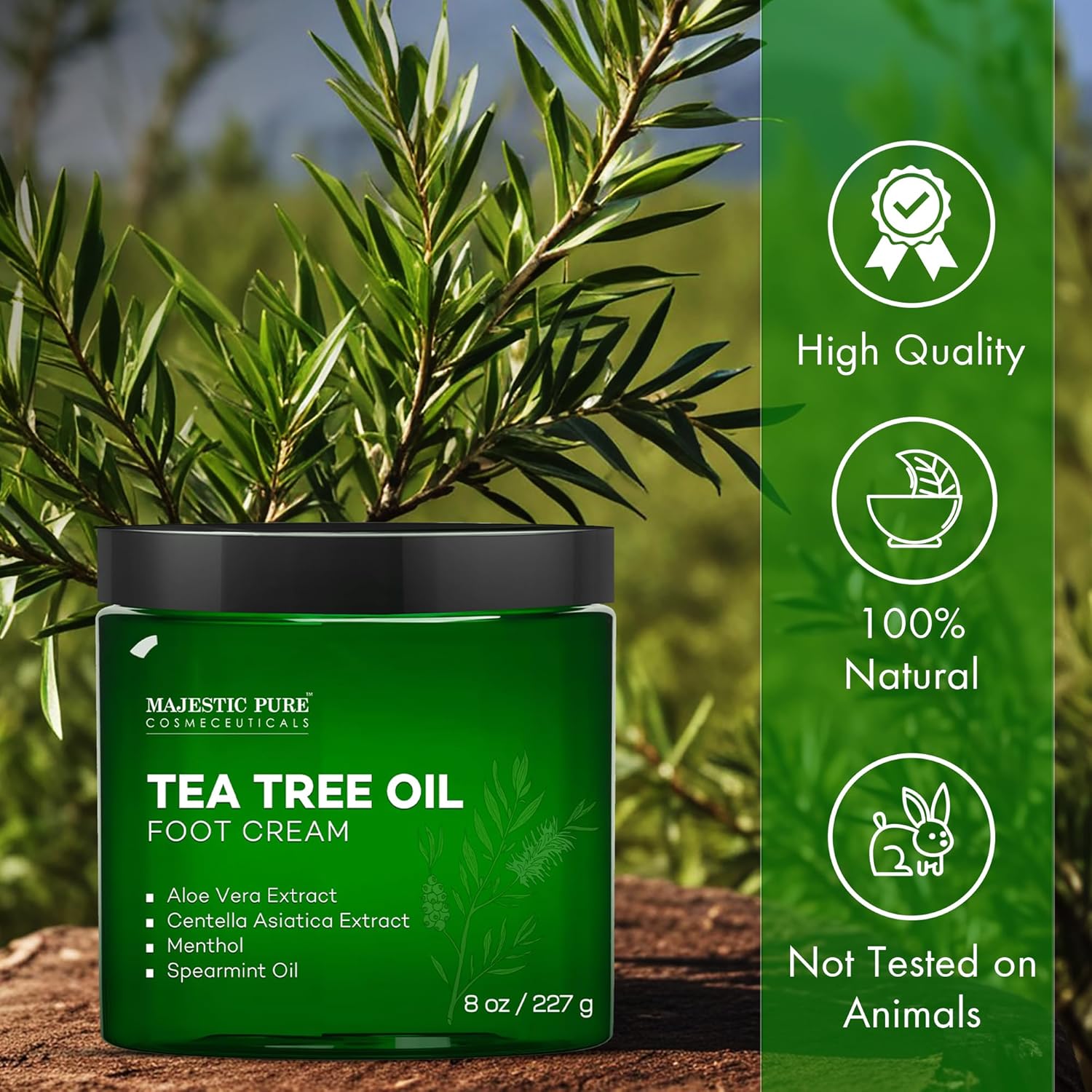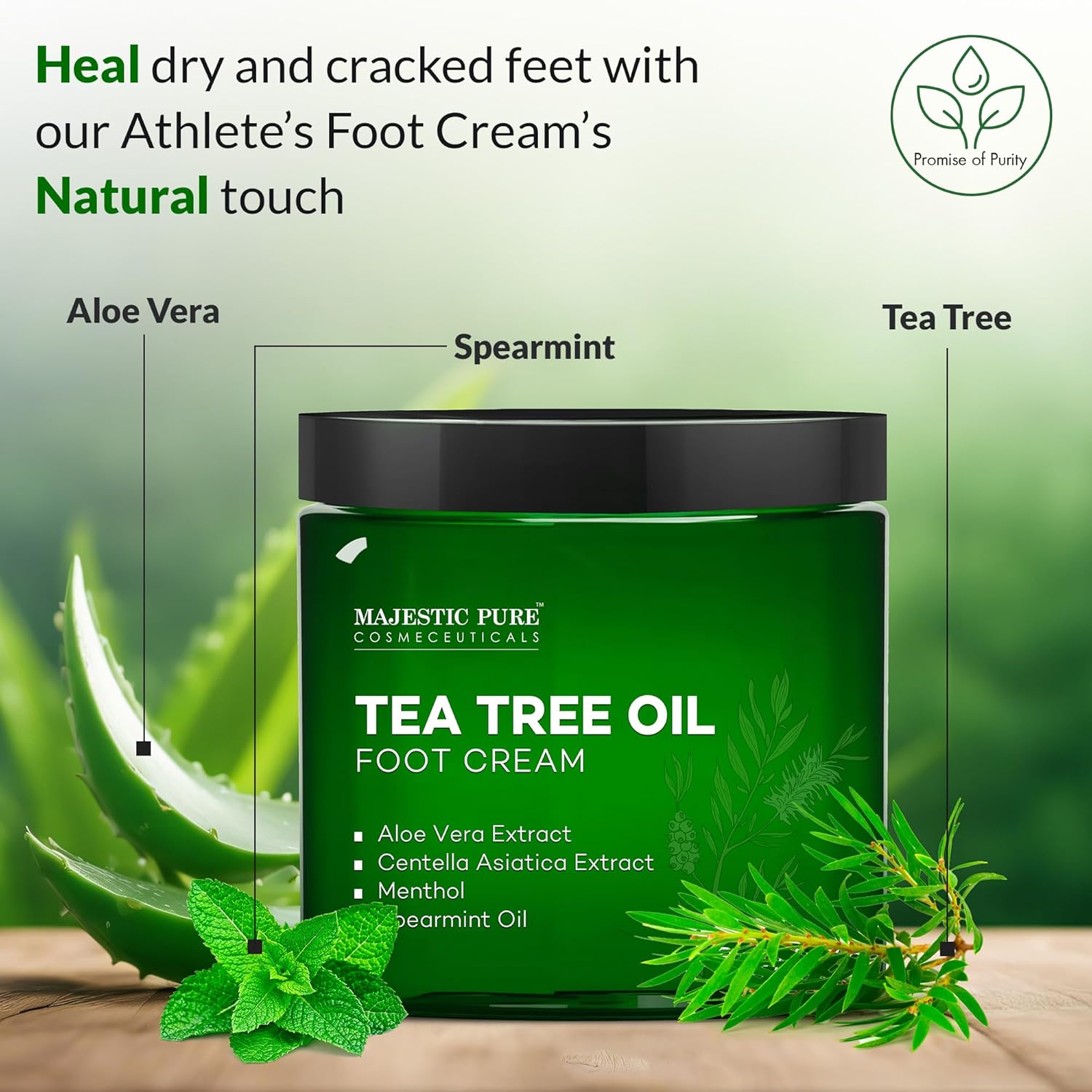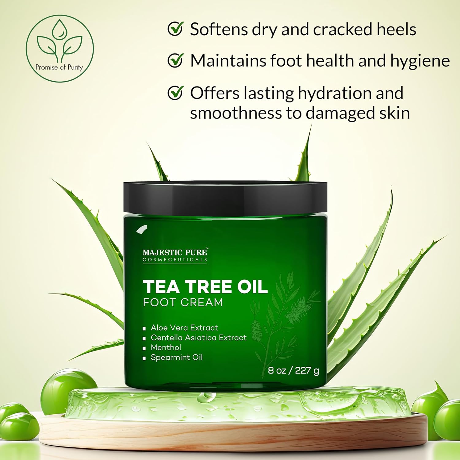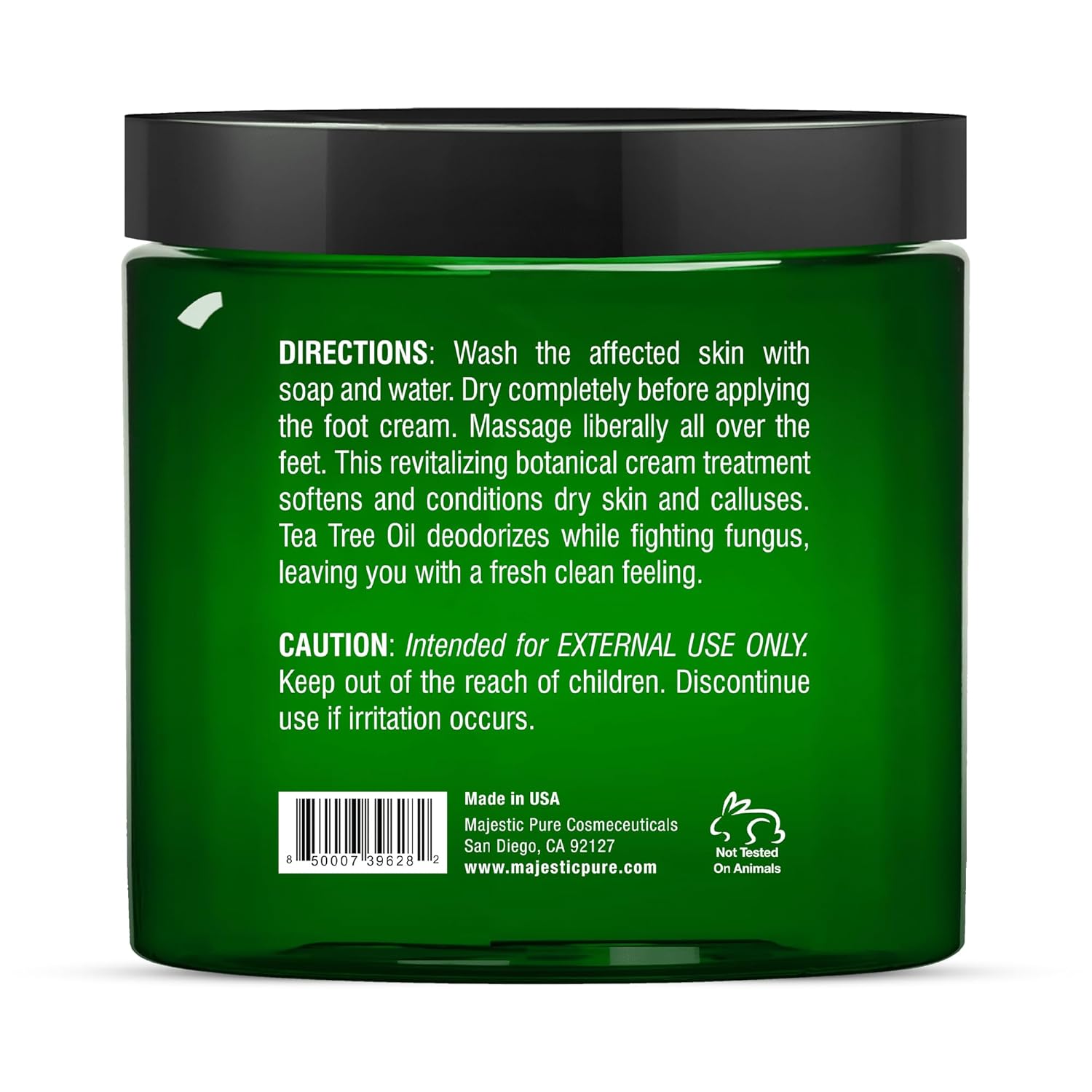 MAJESTIC PURE Athletes Tea Tree Foot Cream with Aloe & Spearmint | Tea Tree Foot Balm Hydrates, Softens, Repair & Conditions Dry Cracked Feet, Heel & Calluses, Antifungal, Soothes Irritated Skin| 8 oz
