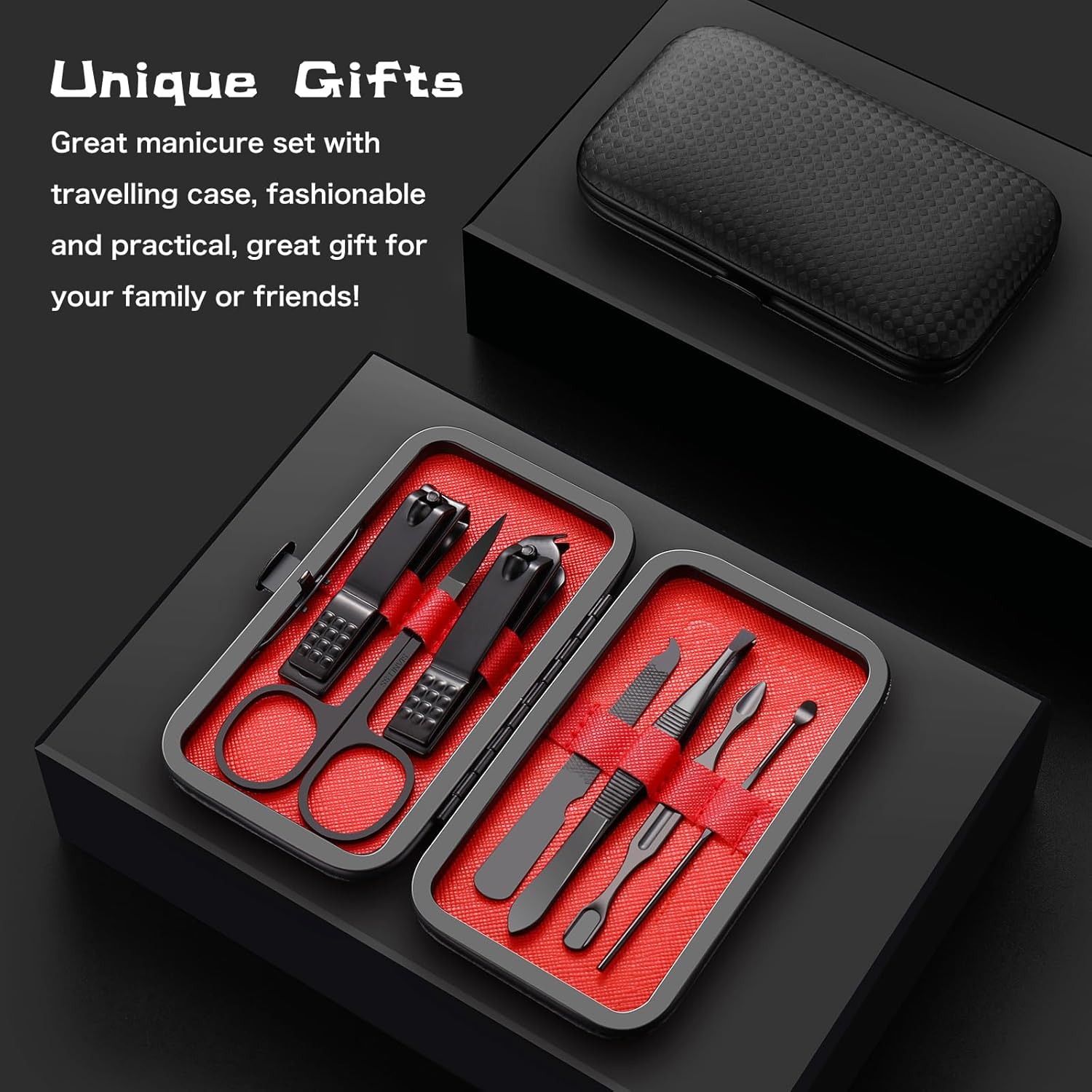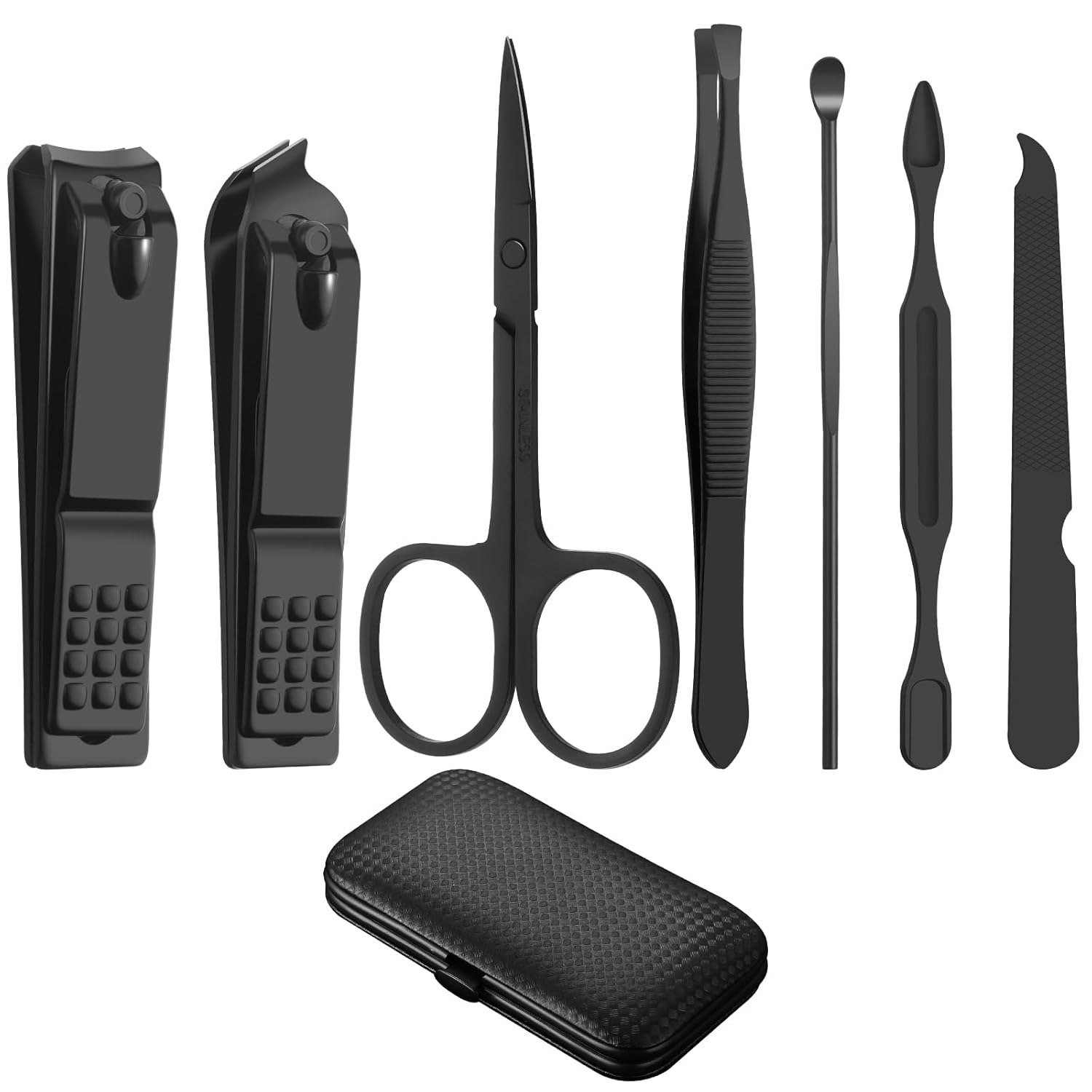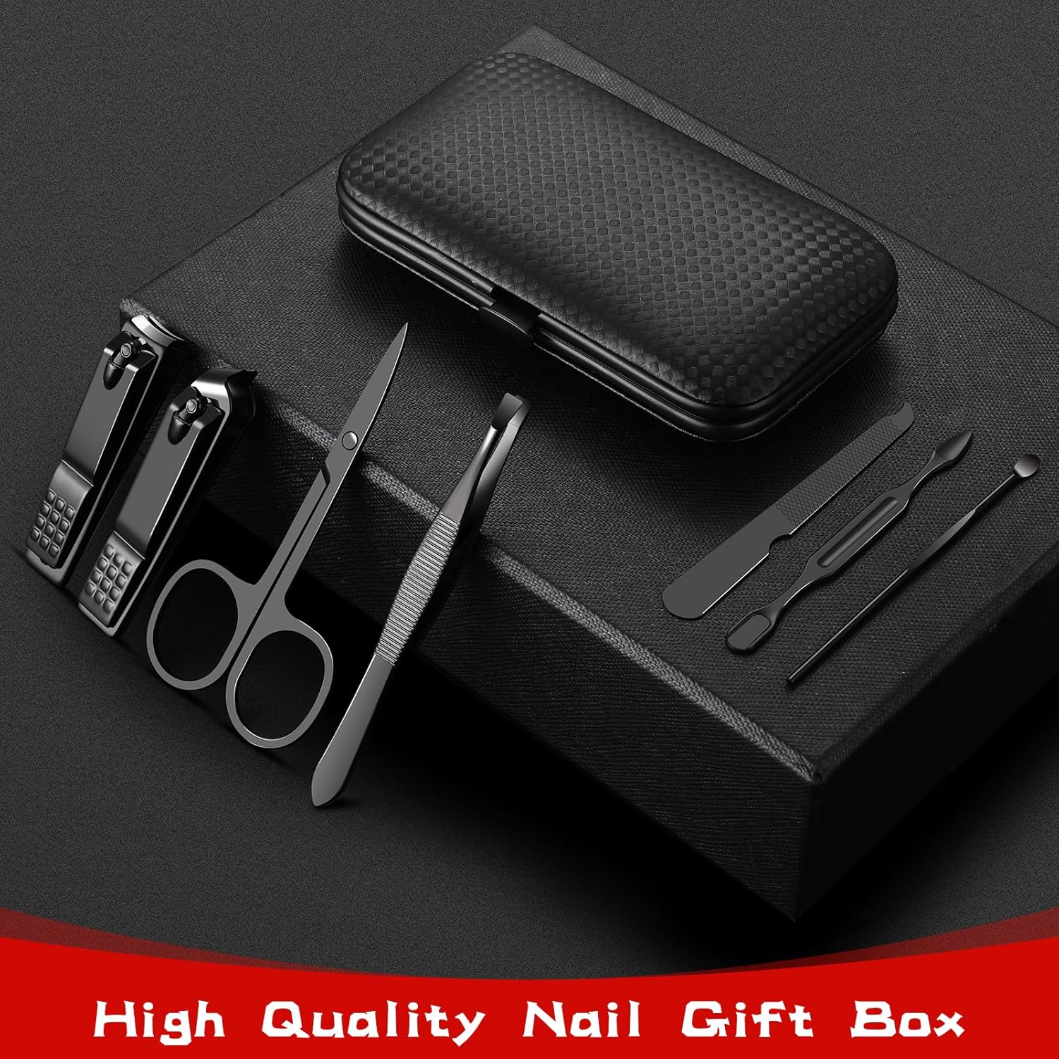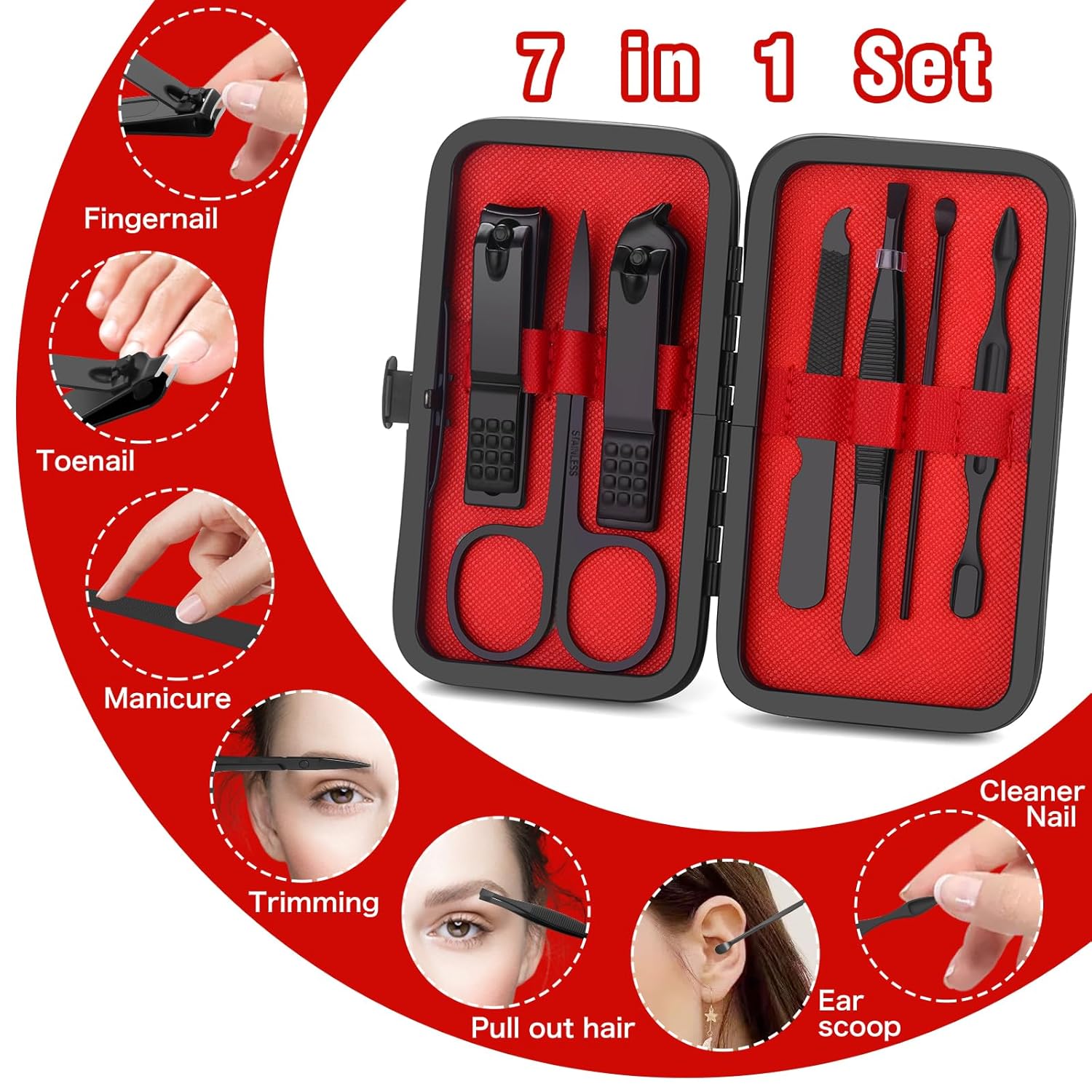 Manicure Set Nail Clippers and Beauty Tool Portable Set 7 in 1 with Leather Travel Case, at-Home Mini Manciure Kit and Nail Pedicure Tools Grooming Kit Gift for Men Women Family Friends Wife(Black)