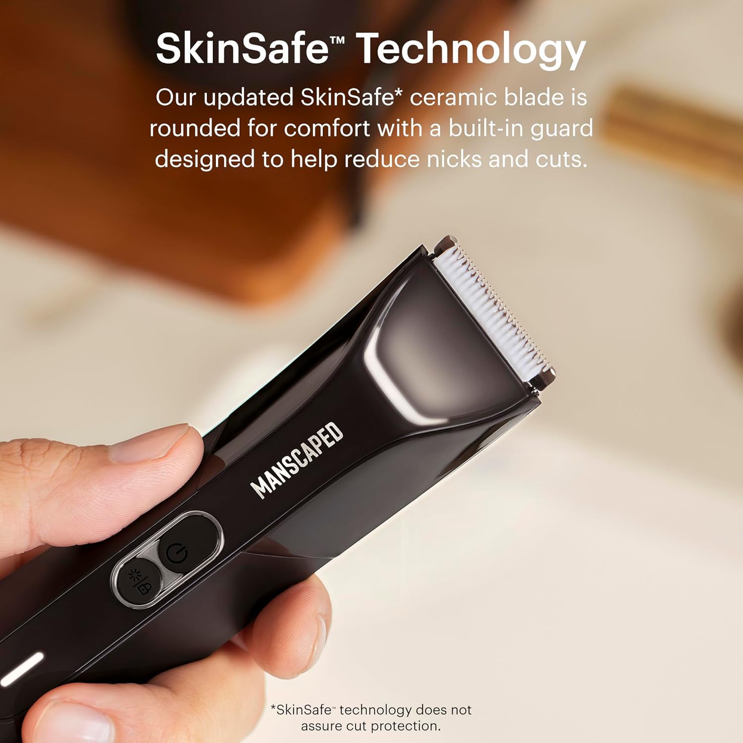 SKINSAFE TECHNOLOGY: Our updated SkinSafe ceramic blade is rounded for comfort with a built-in guard designed to help reduce nicks and cuts. Included are two adjustable comb attachments that allow you to trim from 2-12 mm. *SkinSafe technology does not guarantee cut protection.