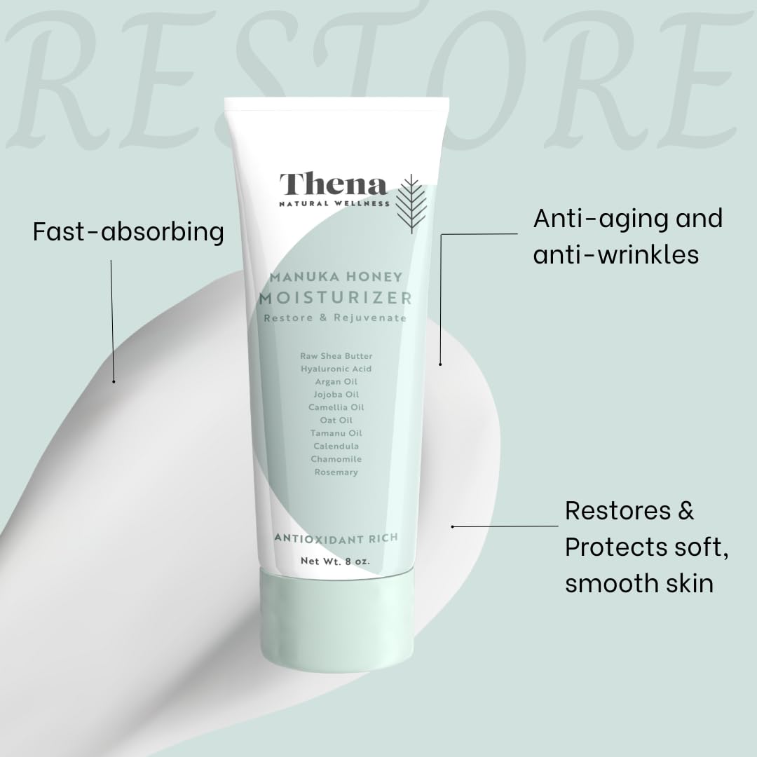 Manuka Honey Cream Moisturizer With Hyaluronic Acid, Soothes Hydrates Repairs Dry Skin Hands Face Body Lotion For Women Men All Natural Anti Aging Hydrating Organic Skin Care Products