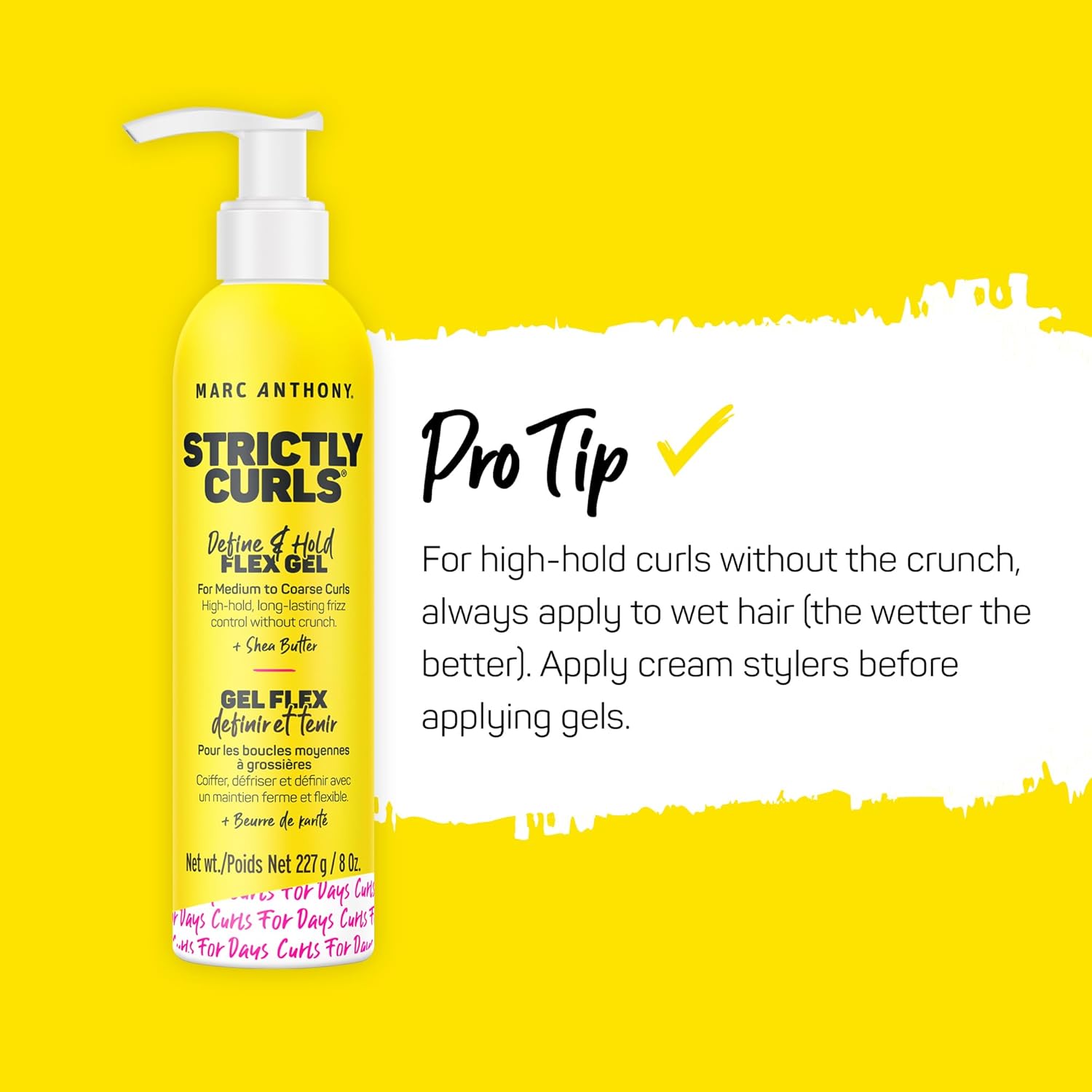 Marc Anthony Define & Hold Flex Hair Styling Gel, Strictly Curls – Medium to Coarse Curls – High Hold, Long-Lasting Frizz Control & Added Shine with Shea Butter – Anti-Frizz Hair Products for Women