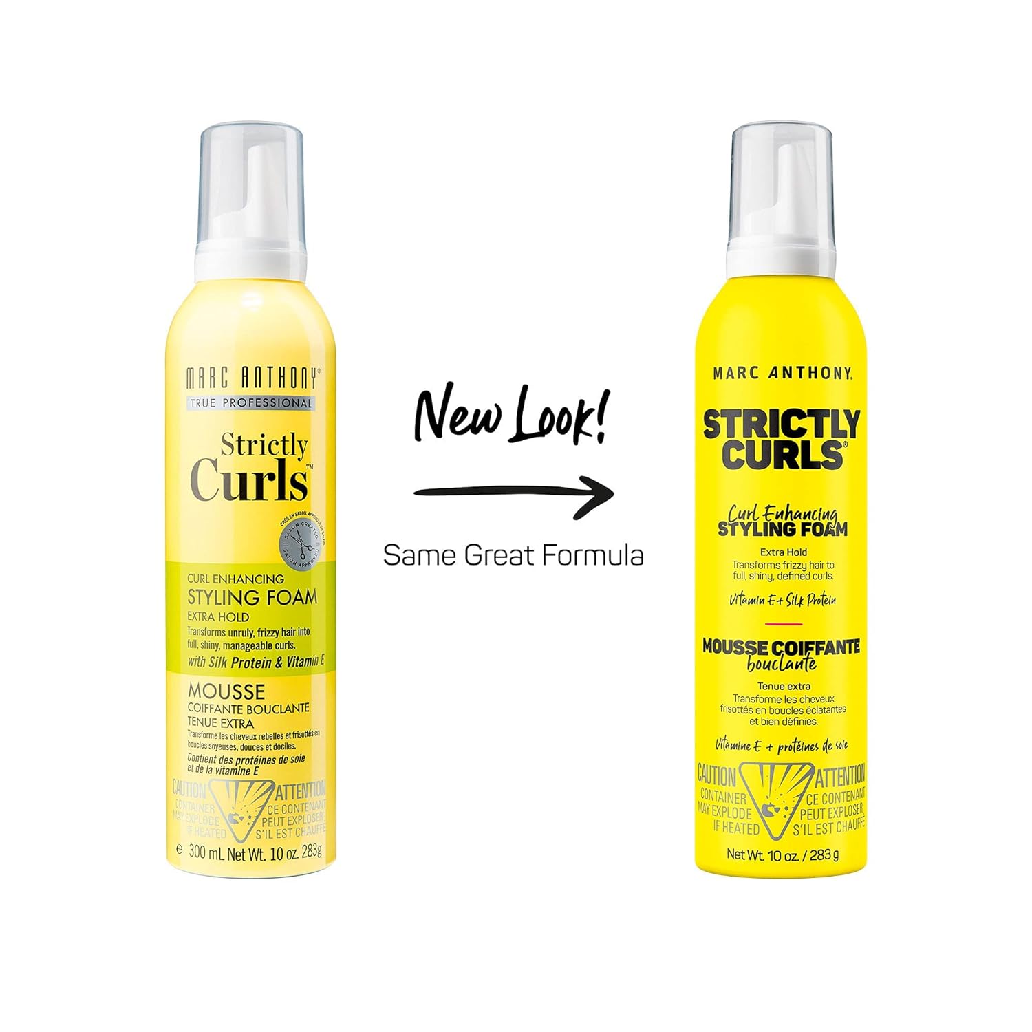 Marc Anthony Strictly Curl Enhancing Styling Foam, Extra Hold – Vitamin E & Silk Proteins Transforms Frizzy Hair to Full, Shiny, Defined Curls – Sulfate-Free Anti-Frizz Mousse Product (Pack of 2)