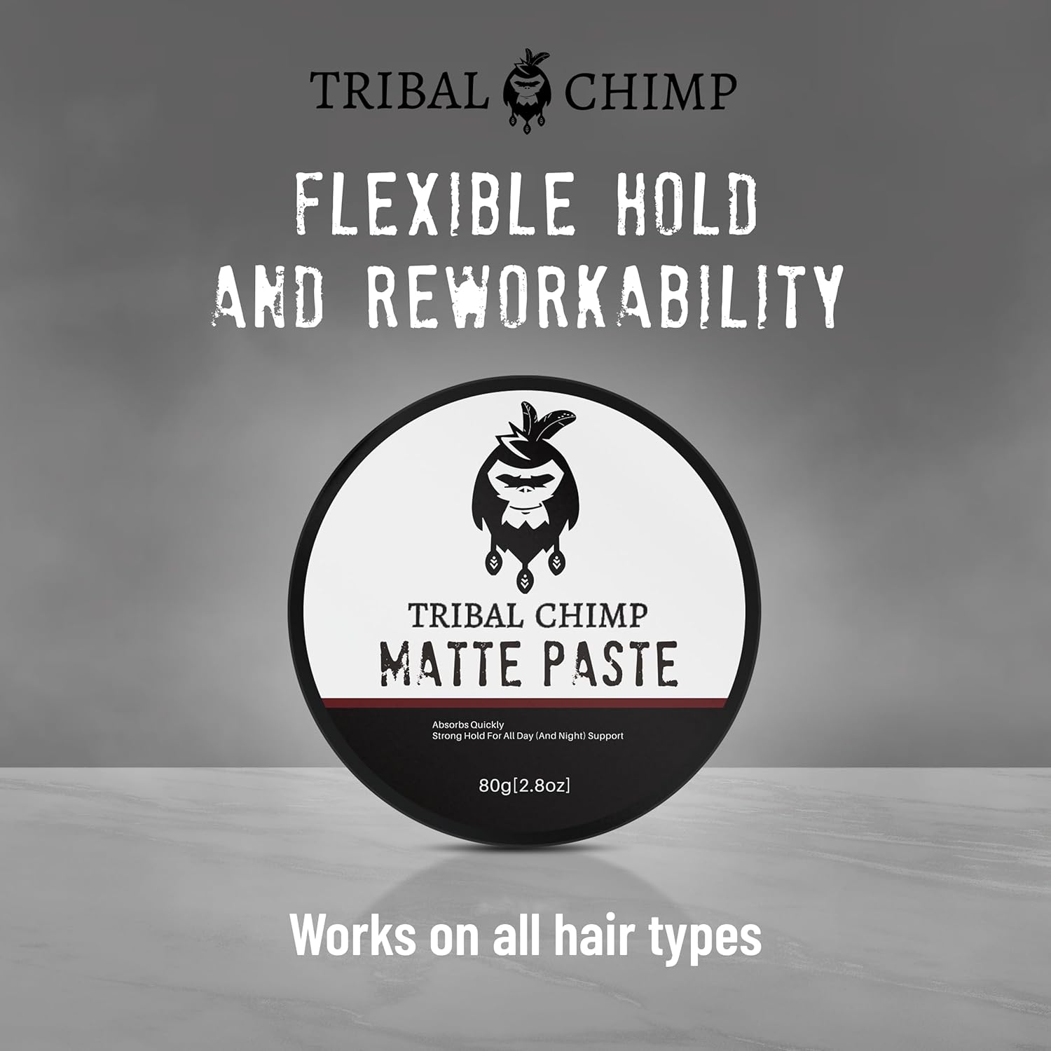 Style in seconds – Our matte texture styling paste delivers a natural groomed look on the go! Start with a dime-sized amount. Rub between hands, apply evenly to hair, and style. For added volume, use Tribal Chimp Hair Styling Powder as a pre-styler.