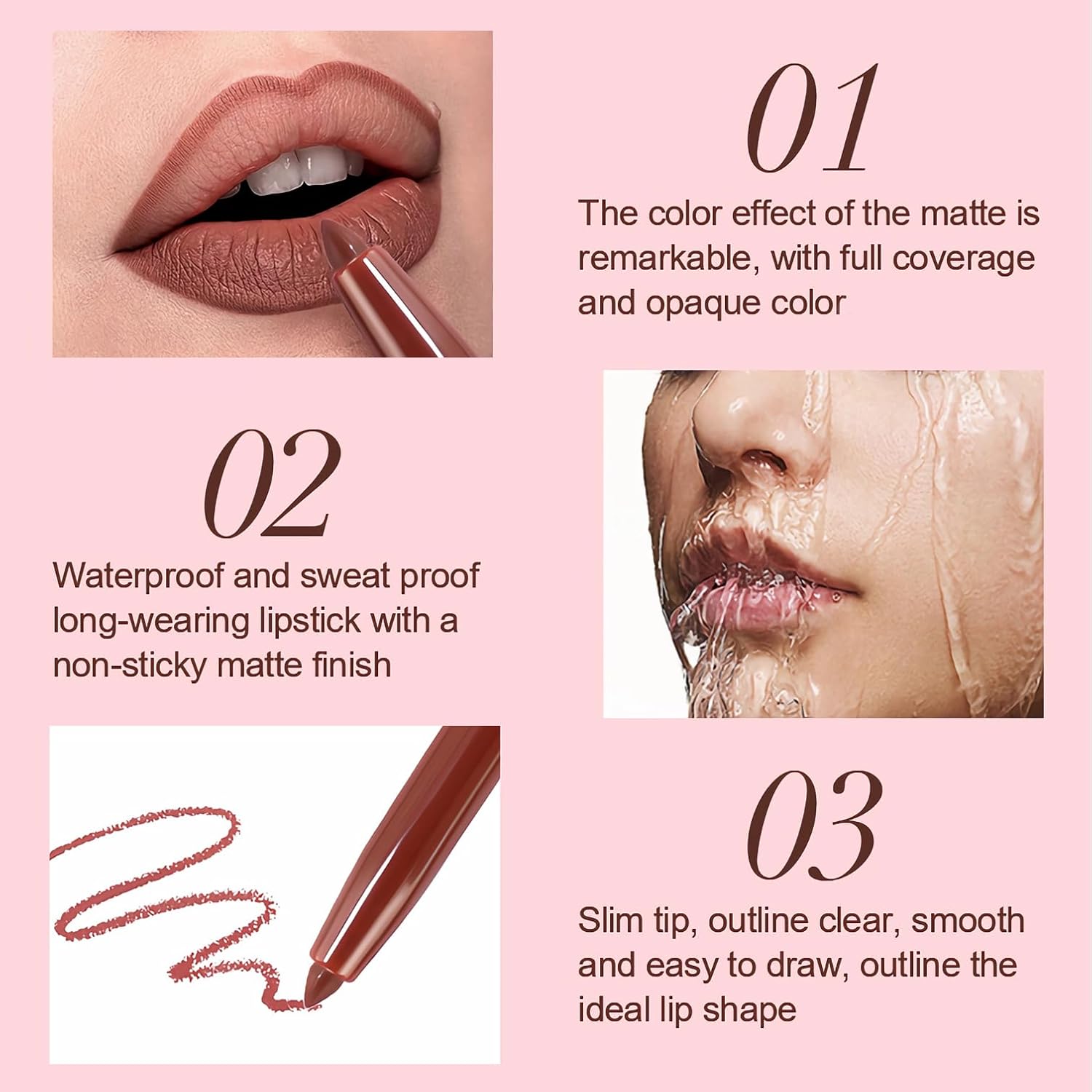 【Long Lasting & Waterproof】This matte lip liner pencil set is made with a low-irritation formula, smooth and comfortable texture, long-lasting waterproof, matte velvet finish, non-sticky cup, hard to fade, make your lip makeup stay on long time.