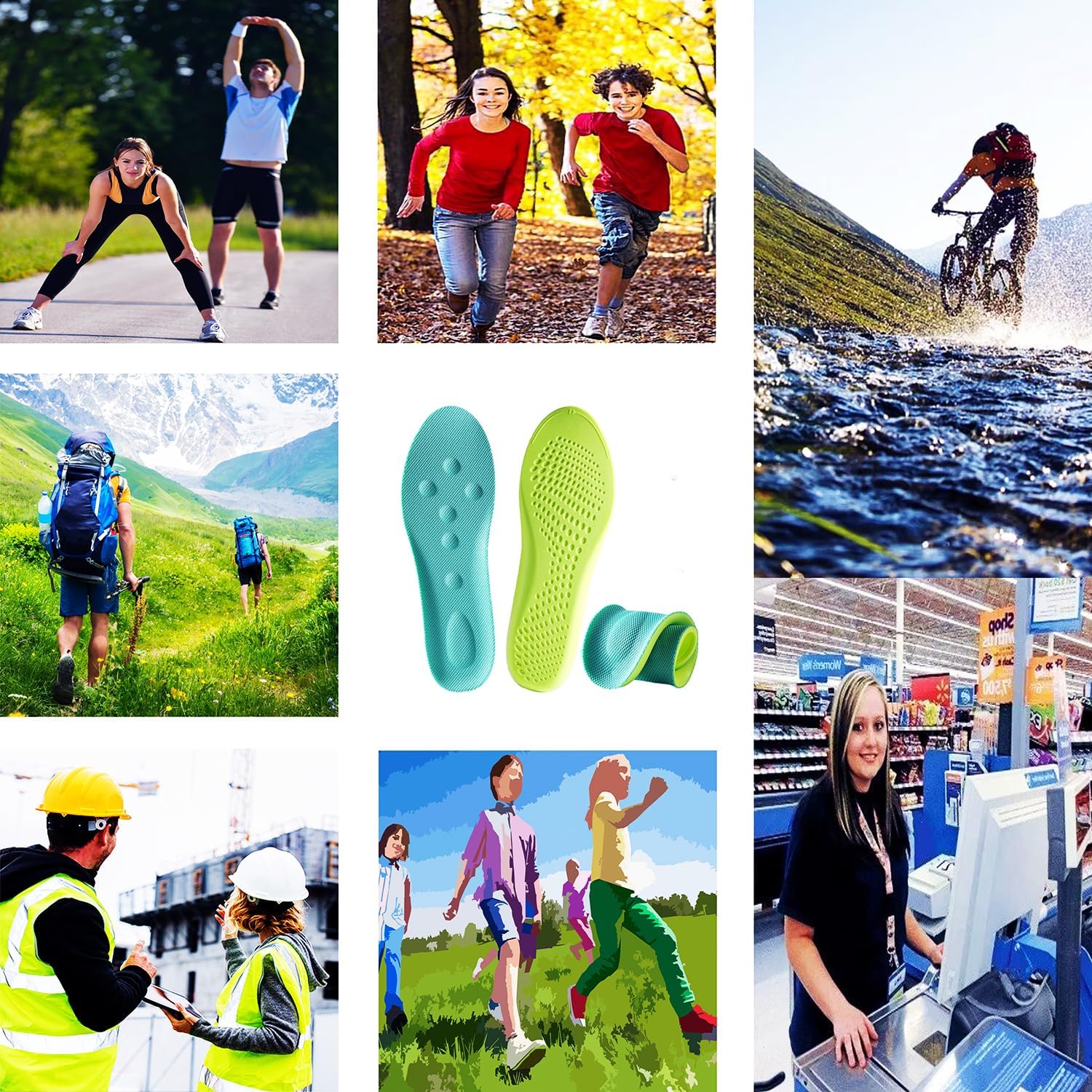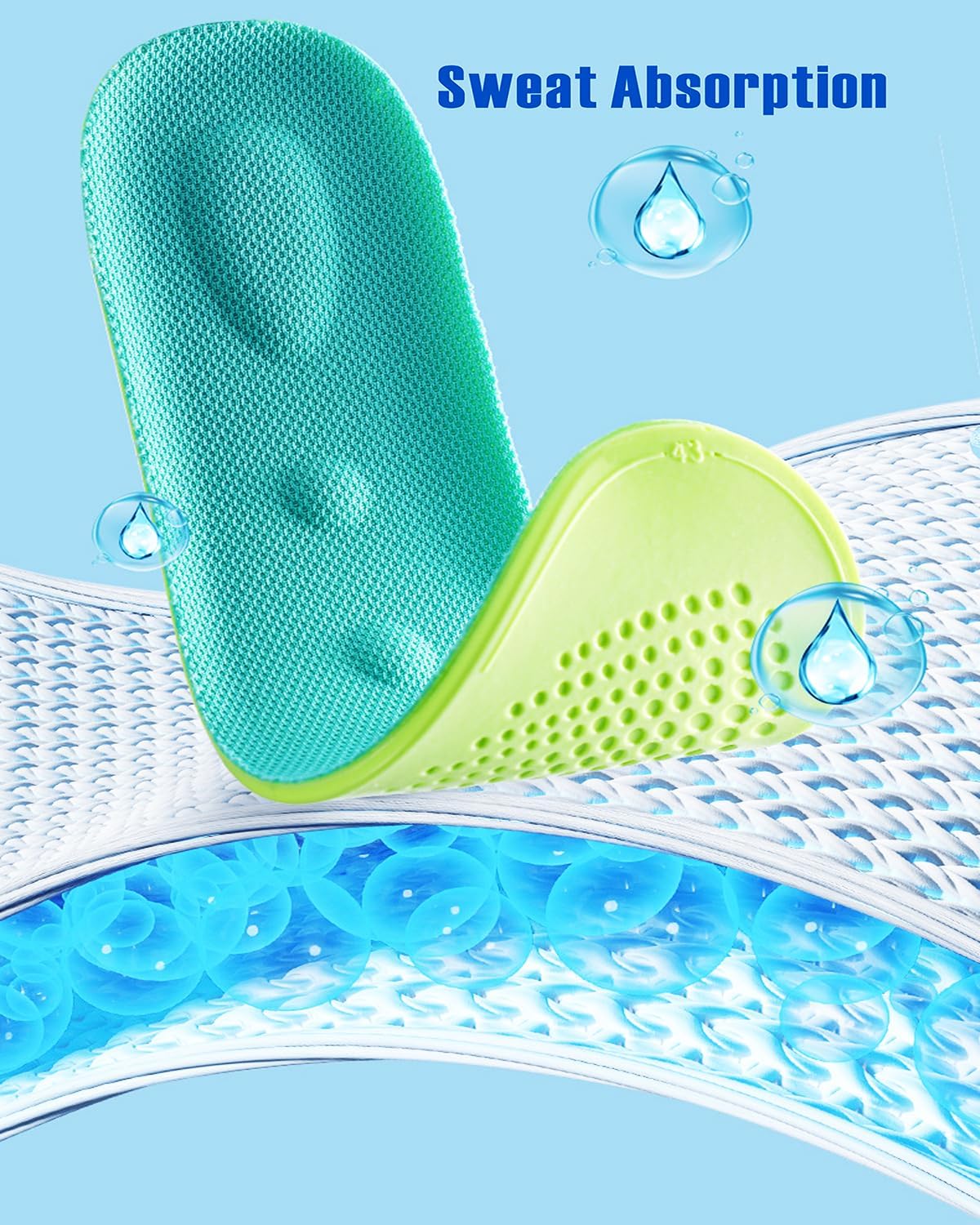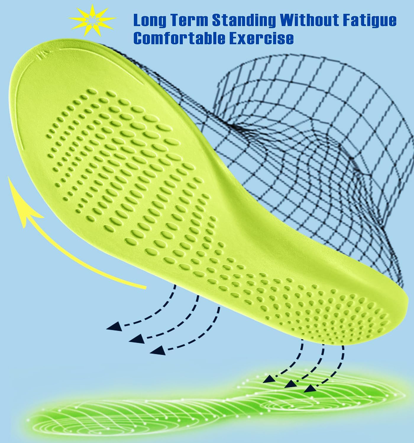 [Highly breathable, quick-drying and anti-odor]The back side is highly breathable with ventilation holes, and it dries quickly to prevent stuffiness and odors,more breathable, softer, When you’re walking more comfortable. [Massage Insole] Small protrusion,Ergonomically design on the surface of the insole, massage cushion bump,Massage the acupoints on the soles of the feet, relieves foot discomfort and fatigue. Relieves foot discomfort caused by walking and stand for a long time Improves walking comfort!
