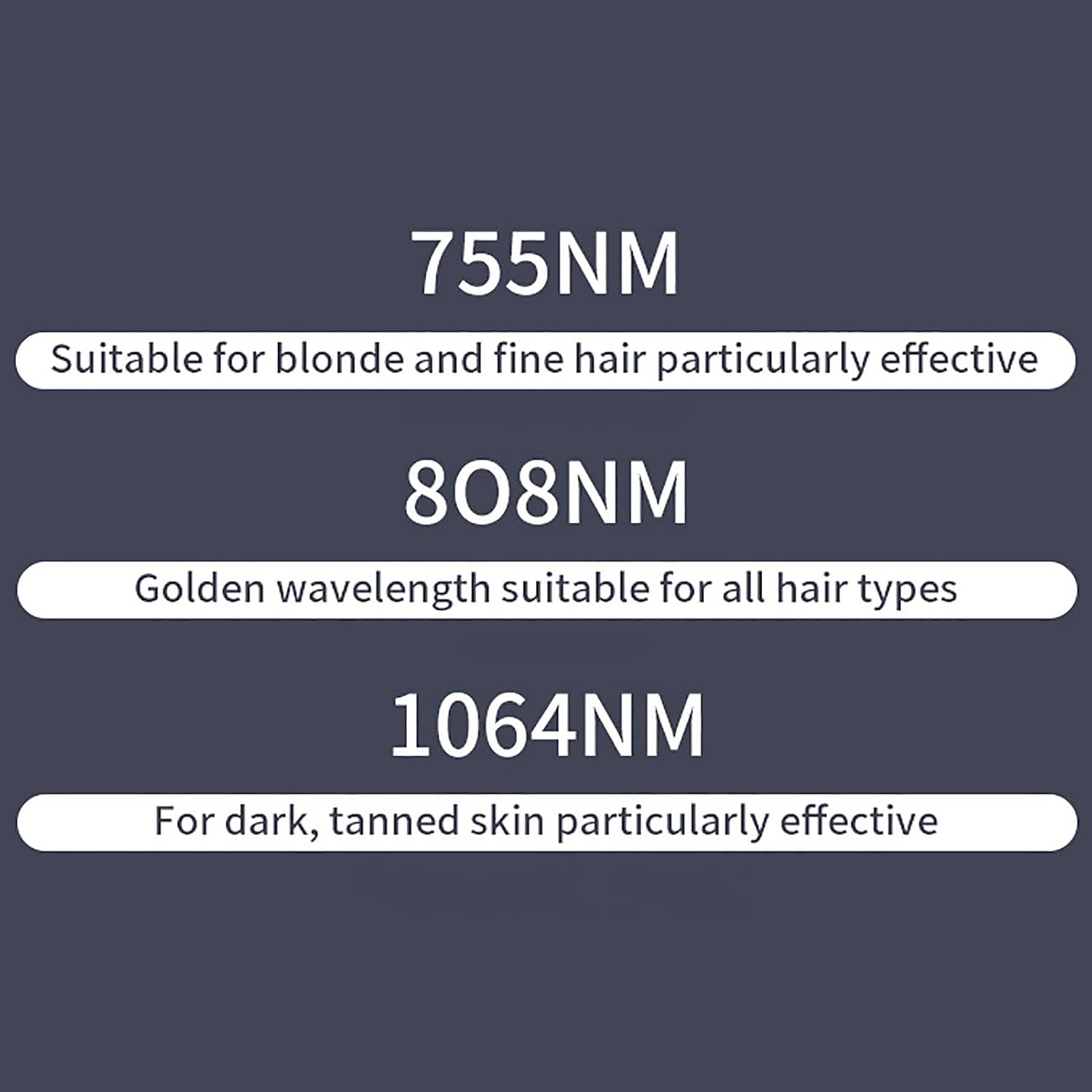 It can be used all over the body. 755nm is suitable for blond and fine hair, 808nm is suitable for black hair, and 1064nm is suitable for thick hair or black skin. It also targets different tissue depths and structures within hair follicles to improve treatment efficiency.
