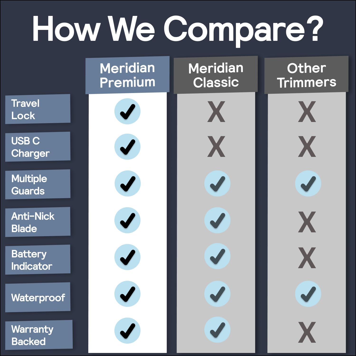 MANUFACTURER WARRANTYWith Meridian’s manufacturer warranty, you can trust that our products are built to last. Groom with confidence using our men’s trimmer for manscaping! Packaging May Vary