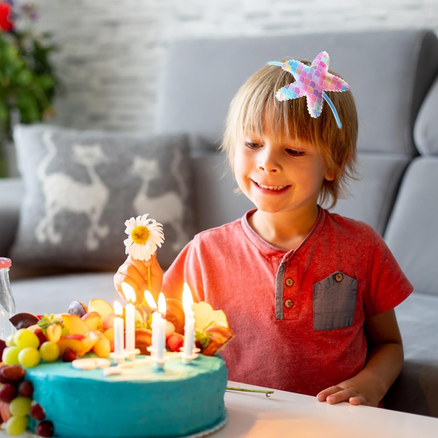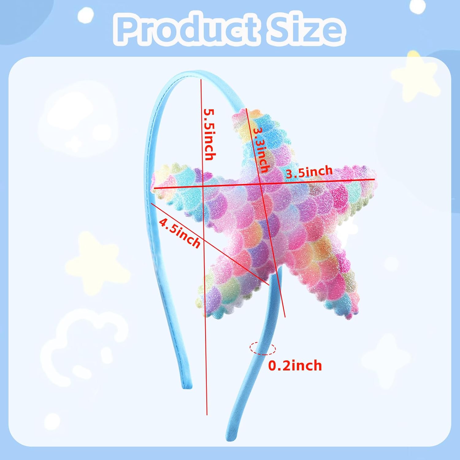 What You Get: Includes 1 pcs blue sea star headband, measuring approximately 5.5×4.5 inches. You can use it as a hair decoration to attend summer parties