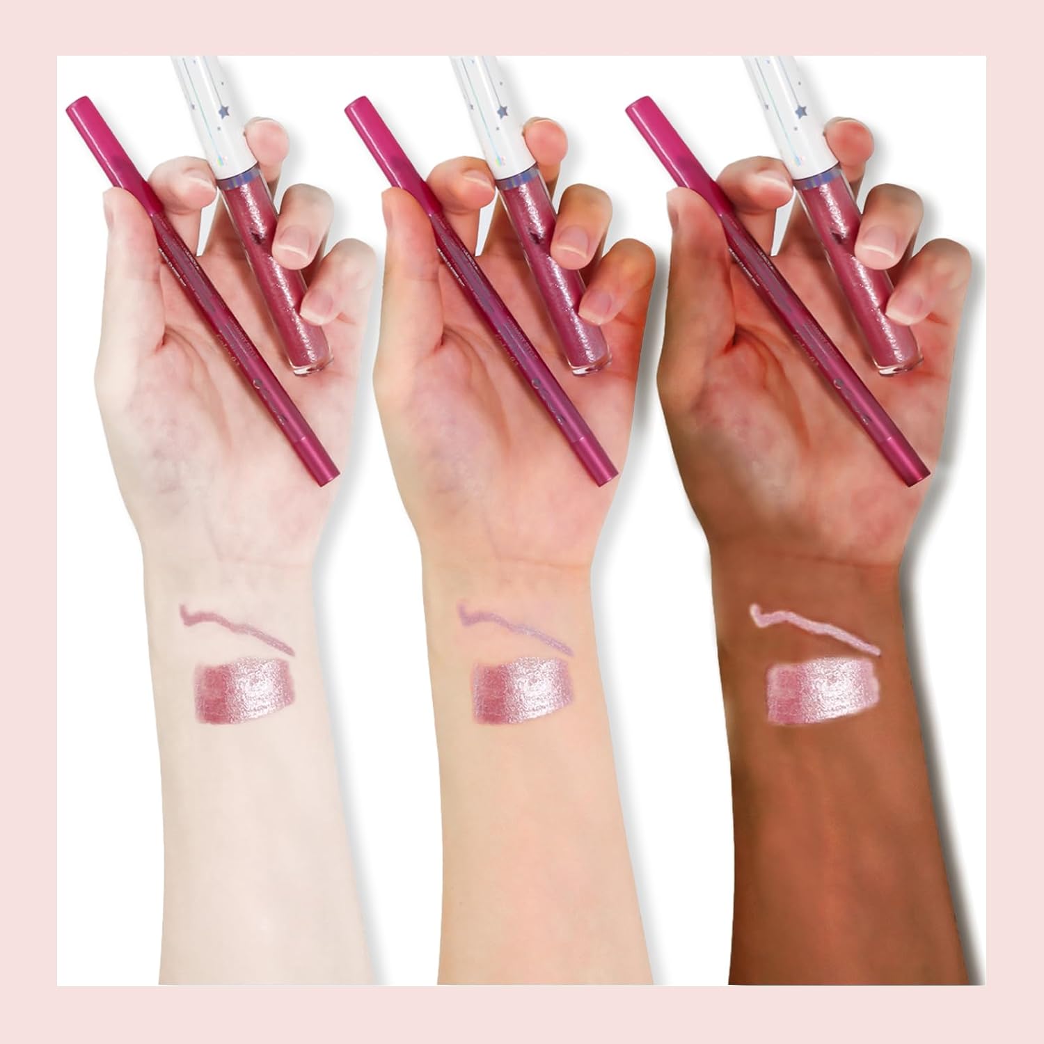 【Liquid Glitter Lipstick and Lip Liner Set】 This pink pearl highly pigmented liquid lipstick has a lightweight, shiny gloss and a pink lip liner with a highly pigmented color so that you can get a full full coverage of lips.