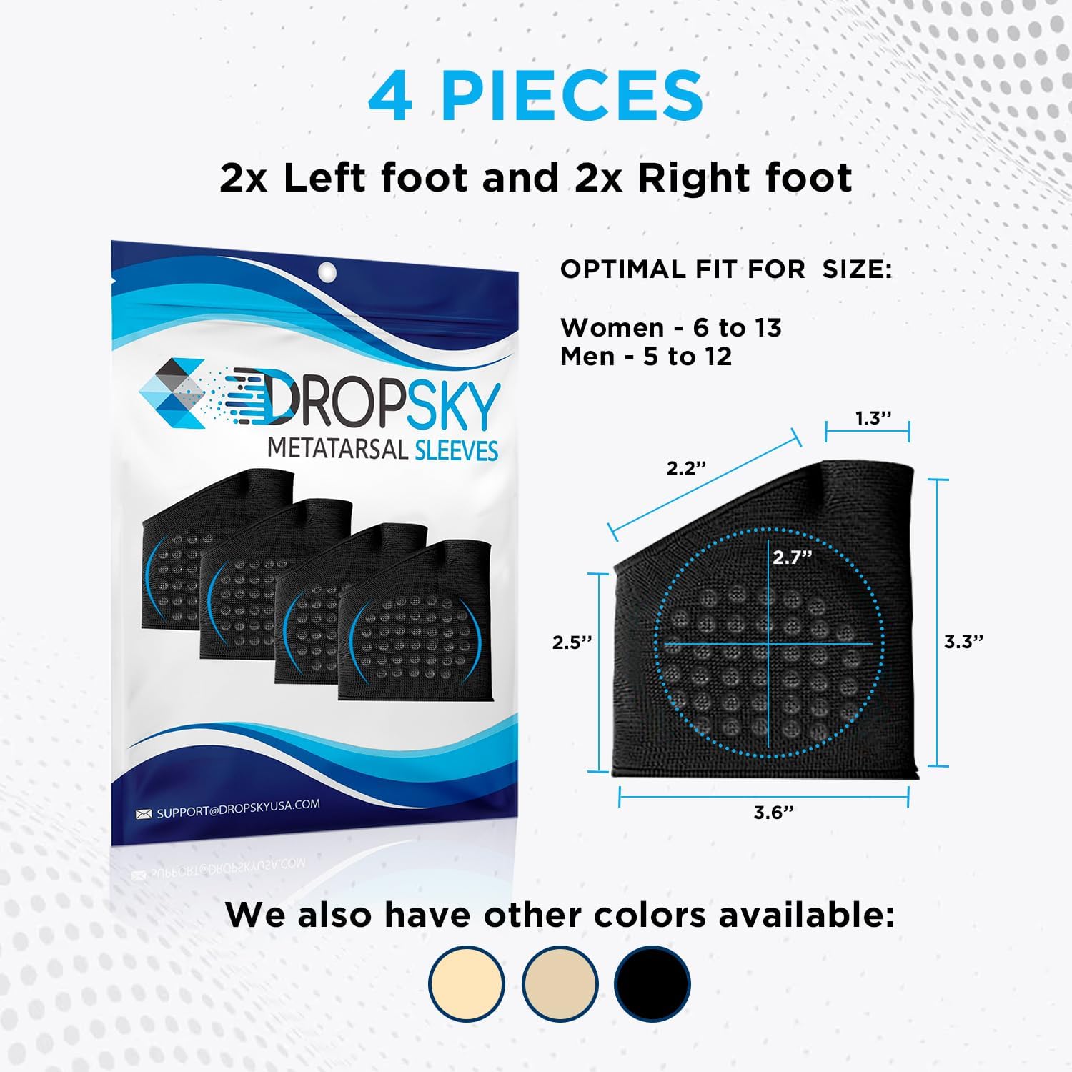Metatarsal sleeve for Women and Men have an ergonomic design and are made of soft and elastic fabric