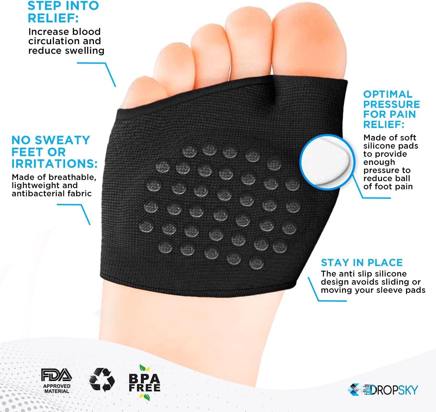 Metatarsal pads for women and men are made of ultra-soft, extremely stretchy, and high-quality materials which let you wash them and wear every day