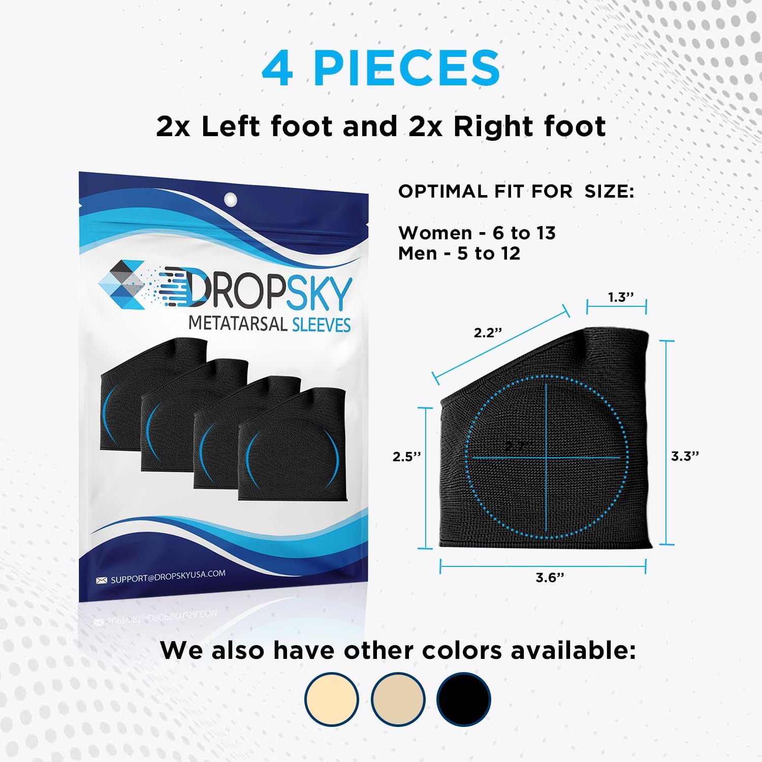 Metatarsal sleeve for Women and Men have an ergonomic design and are made of soft and elastic fabric