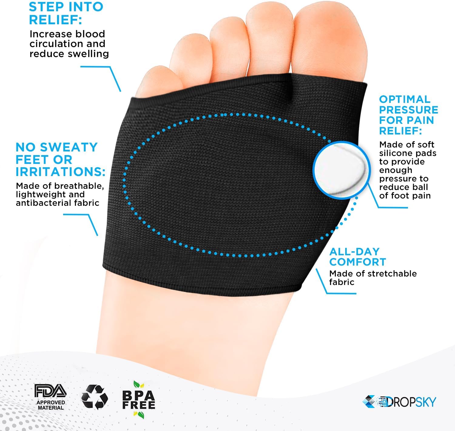 Metatarsal pads for women and men are made of ultra-soft, extremely stretchy, and high-quality materials which let you wash them and wear every day