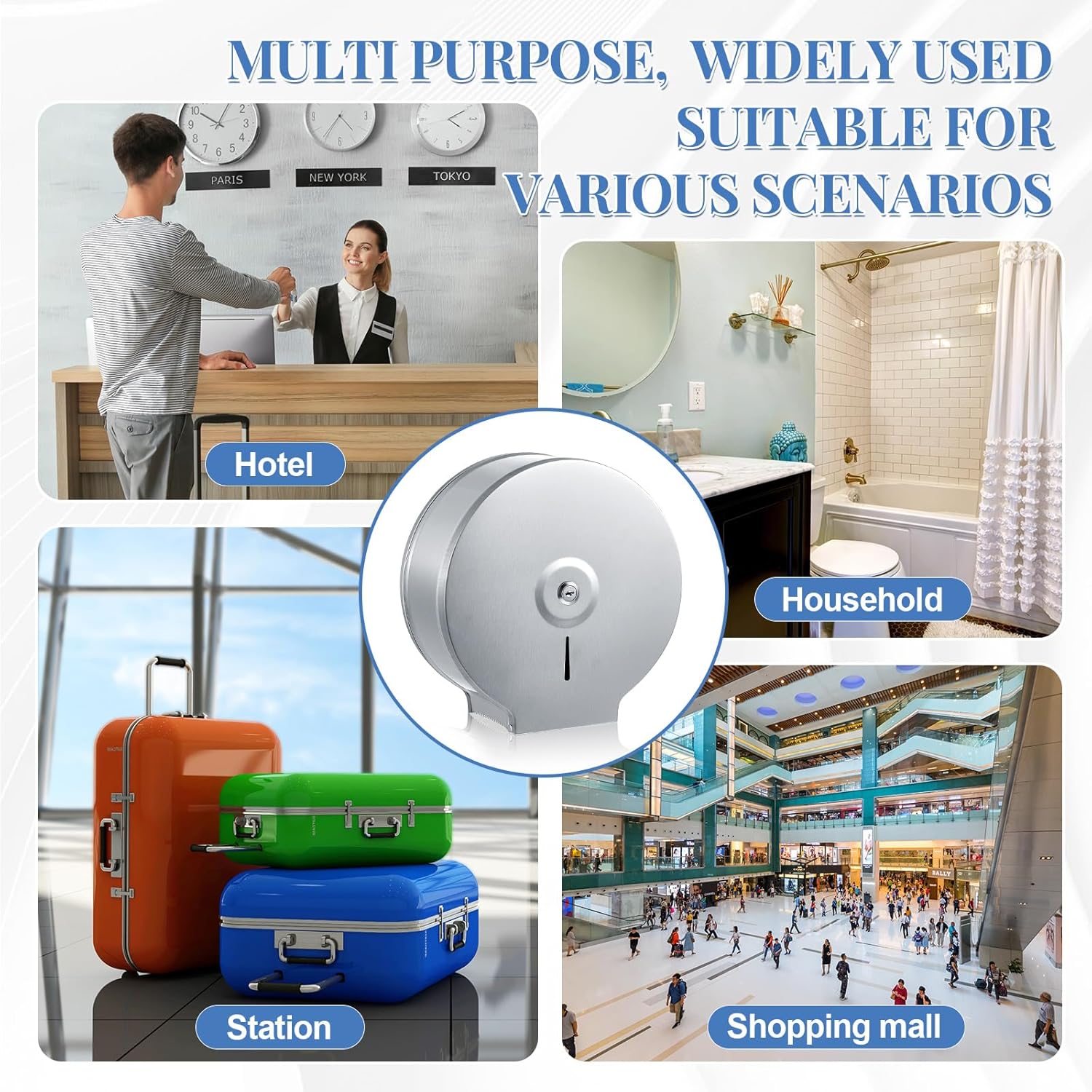 Robust Construction: the commercial toilet paper dispenser is made from 304 stainless steel, well known for its durability and resistance to rust and corrosion; The sturdy material makes it ideal for public places that require sturdy and dependable fixtures, such as offices, schools, malls and restaurants