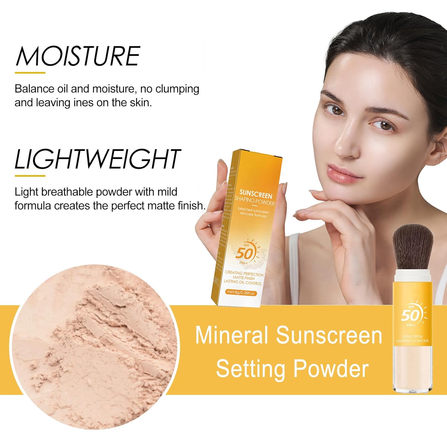 Mineral Sunscreen Setting Powder, SPF 50 PA++,Natural Translucent Mineral Brush Powder, Matte Makeup Setting Powder Long Lasting Oil Control Lightweight Breathable Face Powder for All Skin