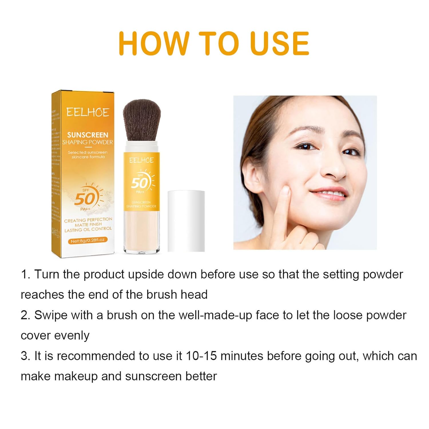 【Easy to Use】Before use, please invert the product so that the sunscreen powder reaches the end of the brush head. Use the brush head to swipe on the face after make-up, the powder will be more evenly covered on your face, which will make the make-up effect is better.