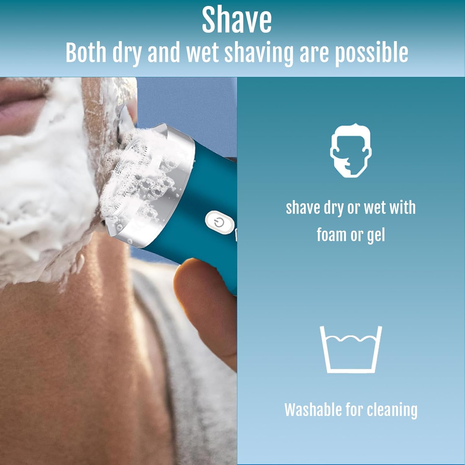 【Both Wet and Dry Shaver】: this Waterproof Razor is IP7X waterproof level, whether it is dry shaving or shaving in the shower, it is also very convenient to clean, just open the cover and wash it with water.