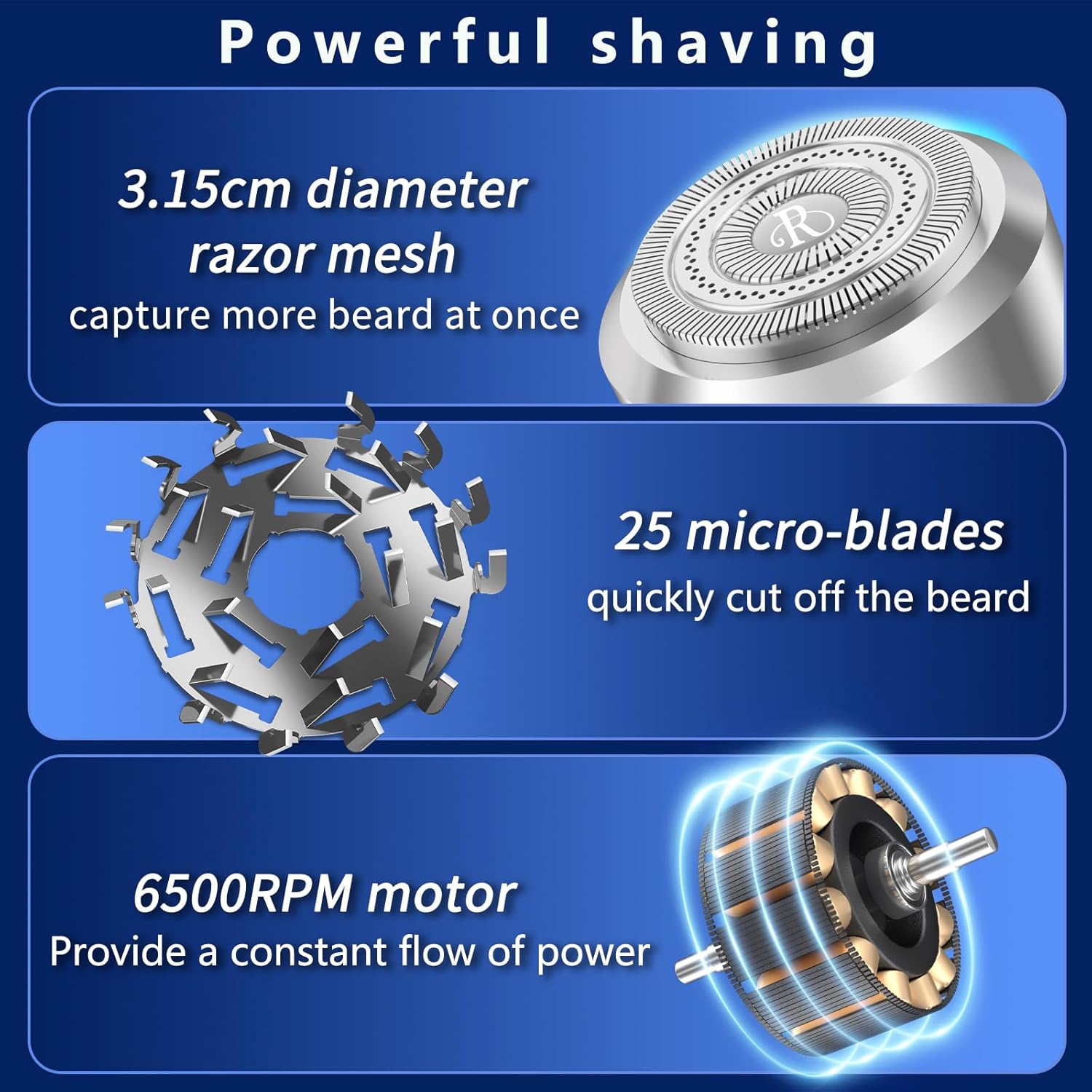 Mini Electric Shaver,Electric Shaves for Men,Alloy Body,25 Small Blades,6500RPM Motor,Type-C Charging use for 45 Days,IPX7 Waterproof,Travel Shaver,uitable for Home,Car,Trave