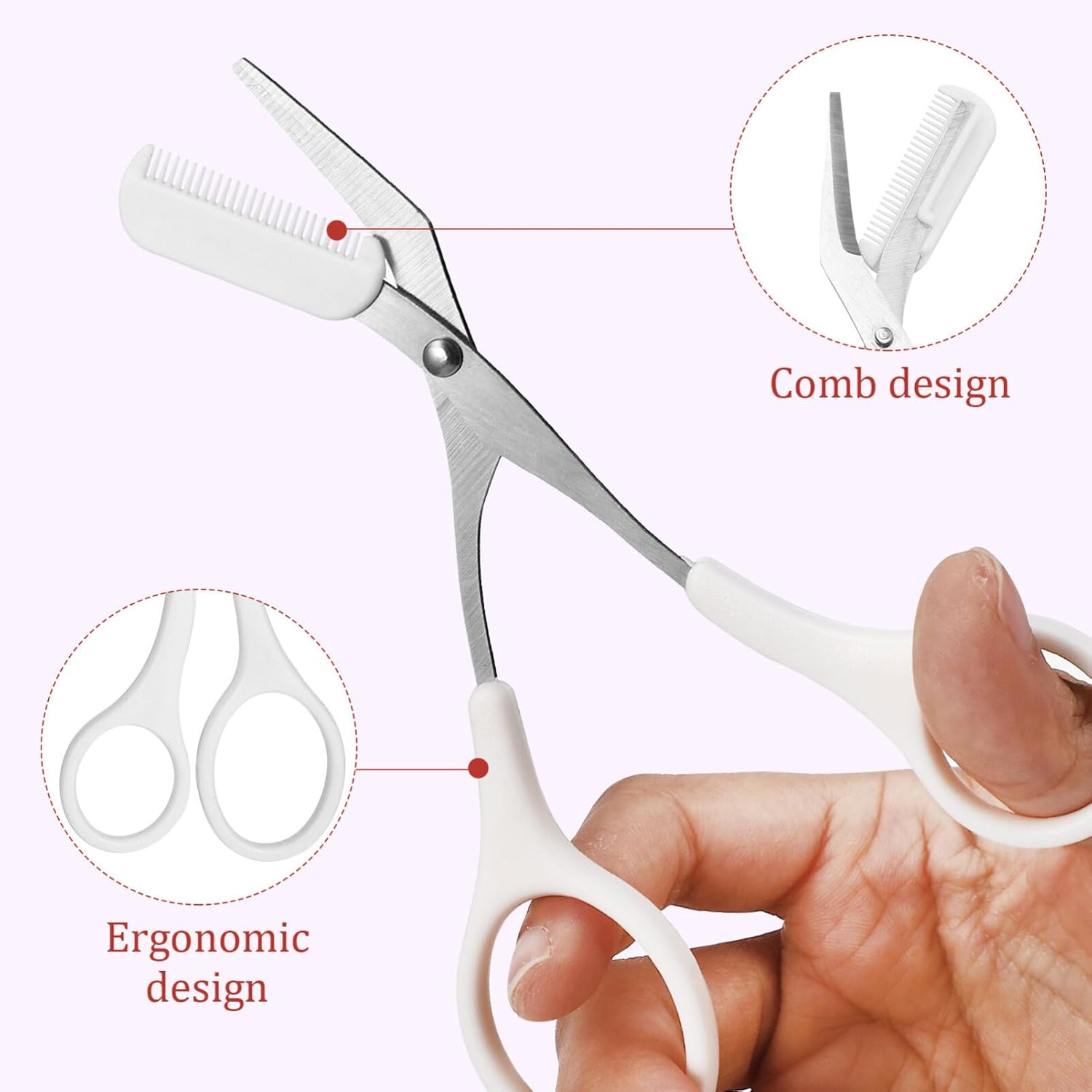 Safe Eyebrow Trimmer: Our plastic eyebrow scissors and razors are designed to perfectly repair and shape your eyebrows. The sharp eyebrow scissors will not hurt your skin when trimming, and the small grid of the eyebrow razor prevents skin scratches.