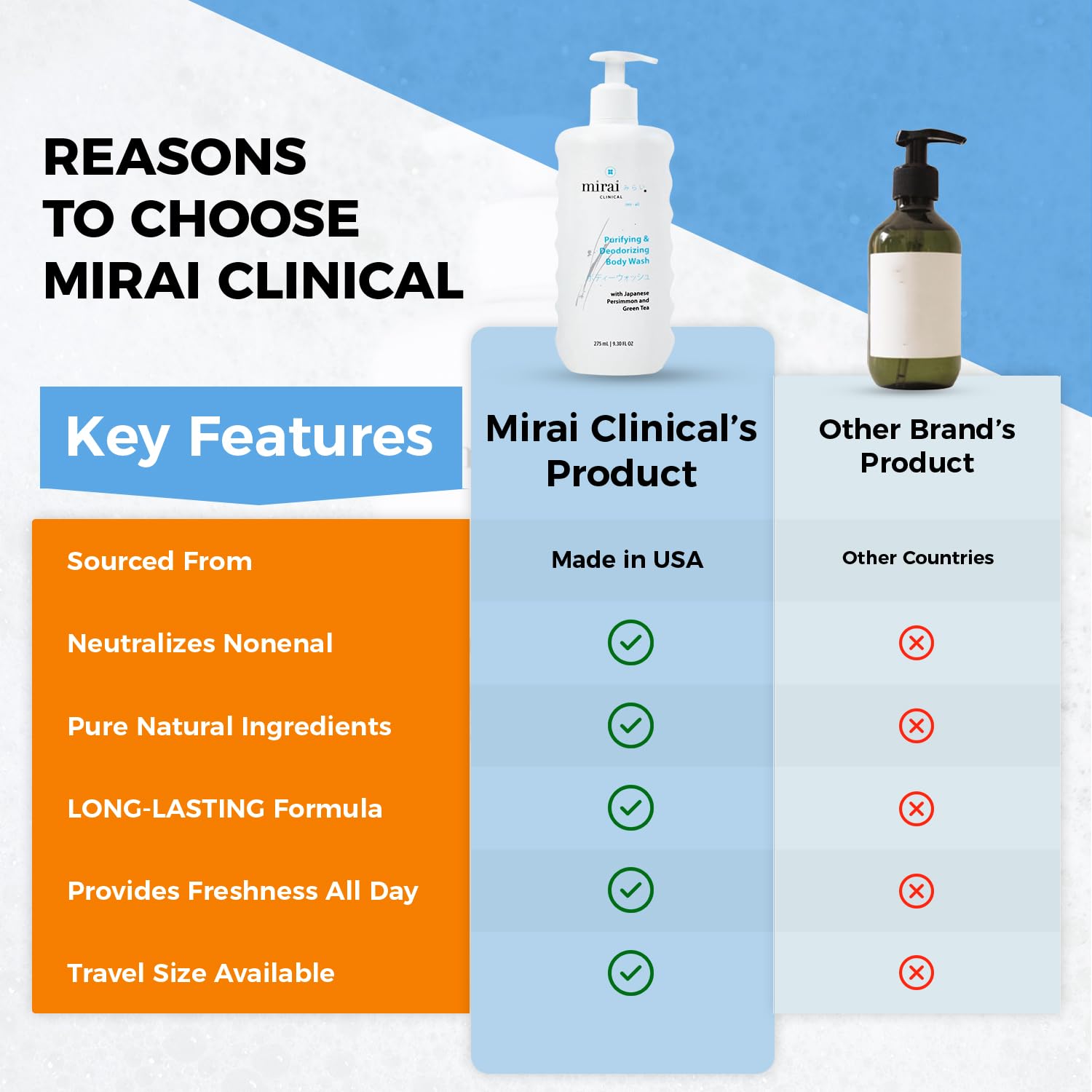 Mirai Clinical Body Wash for Strong Body Odor – Renewing Body Purifying & Deodorizing with Natural Persimmon & Green Tea Extracts – Nonenal Body Odor Eliminator for Women & Men – 9.29 Fl oz