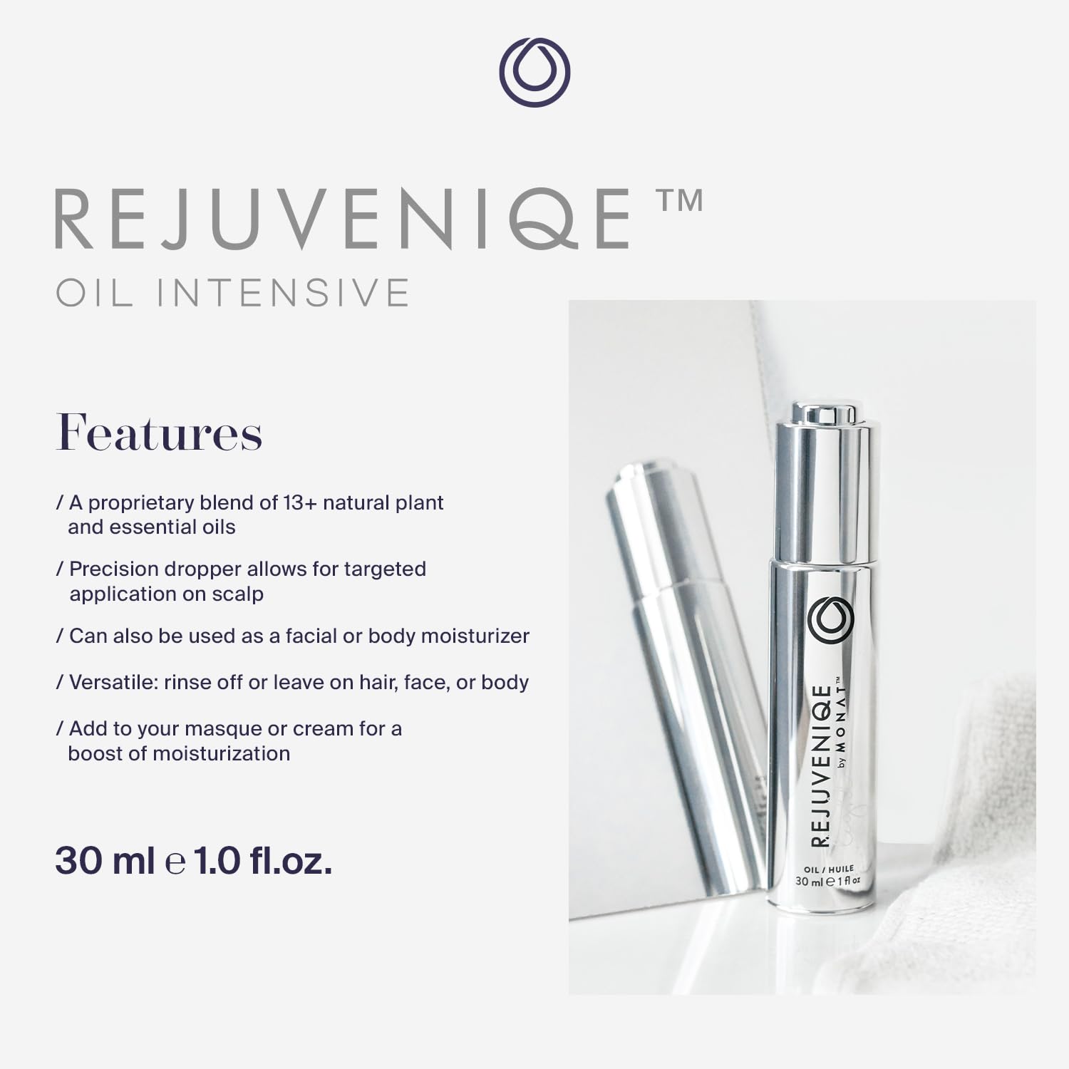 MONAT REJUVENIQE® Oil Multi-Purpose Hair & Skin Treatment with 13+ Natural Plant and Essential Oils, Hydrates and Strengthens, 30 ml (1.0 fl.oz.)