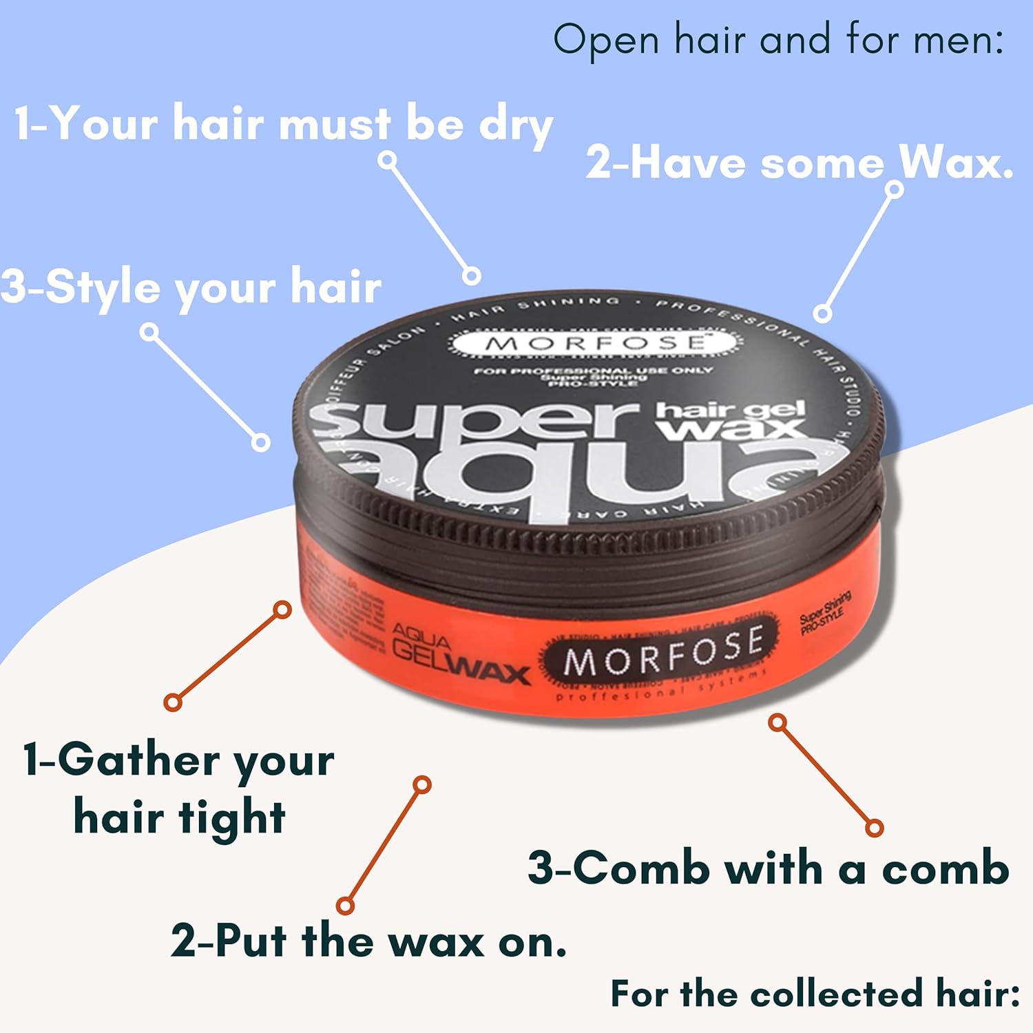 Morfose Super Aqua Hair Gel Wax with Strong Flexible 4 Hold, All Day Long, Hair Wax for Women and Men, Edge Wax, Gel Wax, Manage Flyaways, and Curls, Mango Scent, 5.92 fl. oz.
