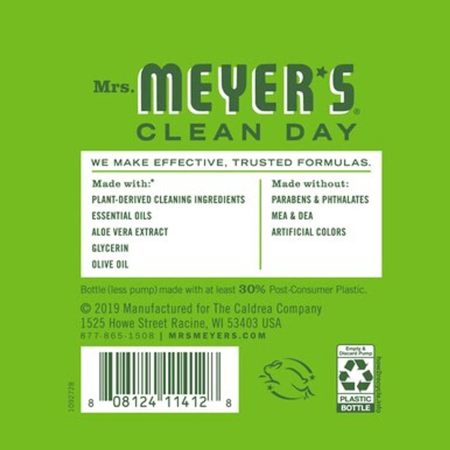 Mrs. Meyer’s Clean Day Liquid Hand Soap is specifically made to clean and refresh hands without drying, while providing a special, unique scent. This hardworking liquid soap formula contains olive oil, aloe vera, essential oils and other carefully chosen ingredients to clean and refresh busy hands. Also available as a 33-ounce refill in Basil, Geranium, Honeysuckle, Lavender, Lemon Verbena, Oatflower, Peony, Plum Blossom, and Rainwater scents.