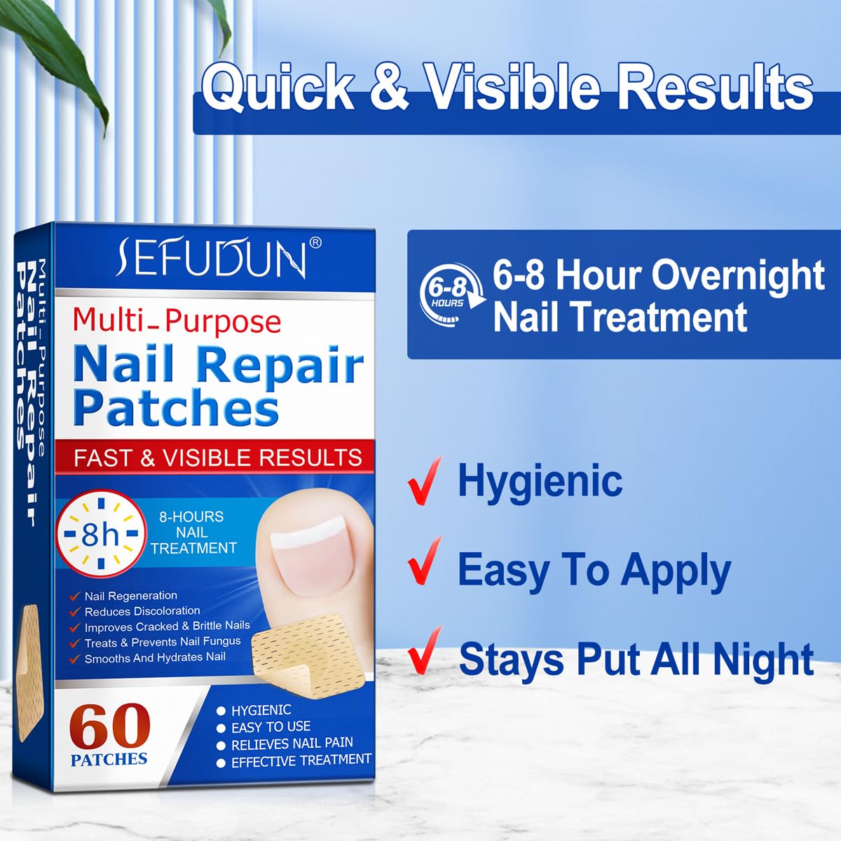 Muti-Purpose Nail Repair Patches, 60 pcs Overnight Nail Repair Treatment for Nail Discoloration & Cracked Nails, Restore Healthy Nail Appearance
