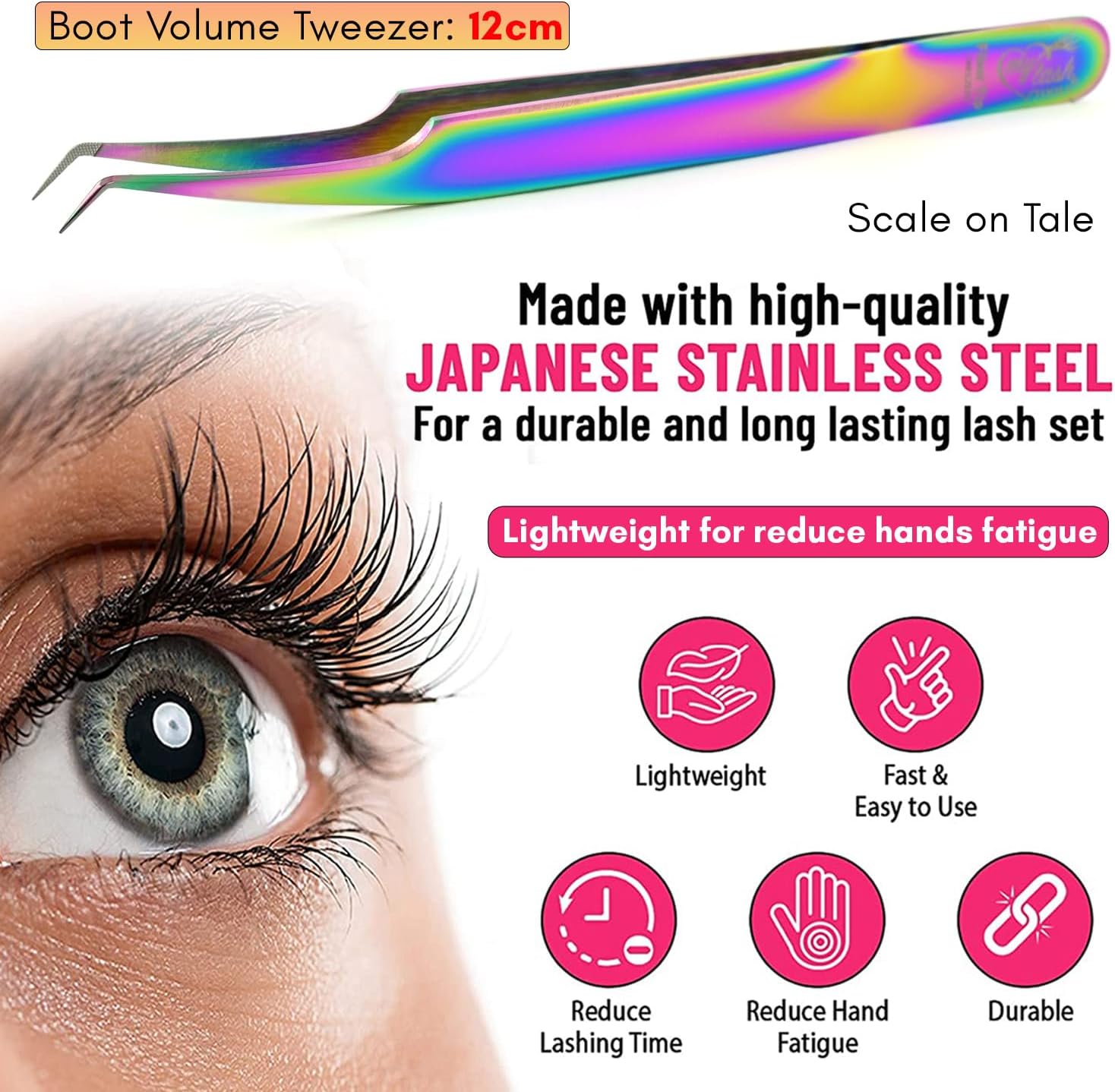 5- Boot volume tweezer that covers all eyelash extension needs. Our eyelash extension tweezers are Lightweight which means no cramping in the hands enjoy how easy it is to grab the eyelashes and even use them to separate them. These work great with all lash techs no matter your experience!