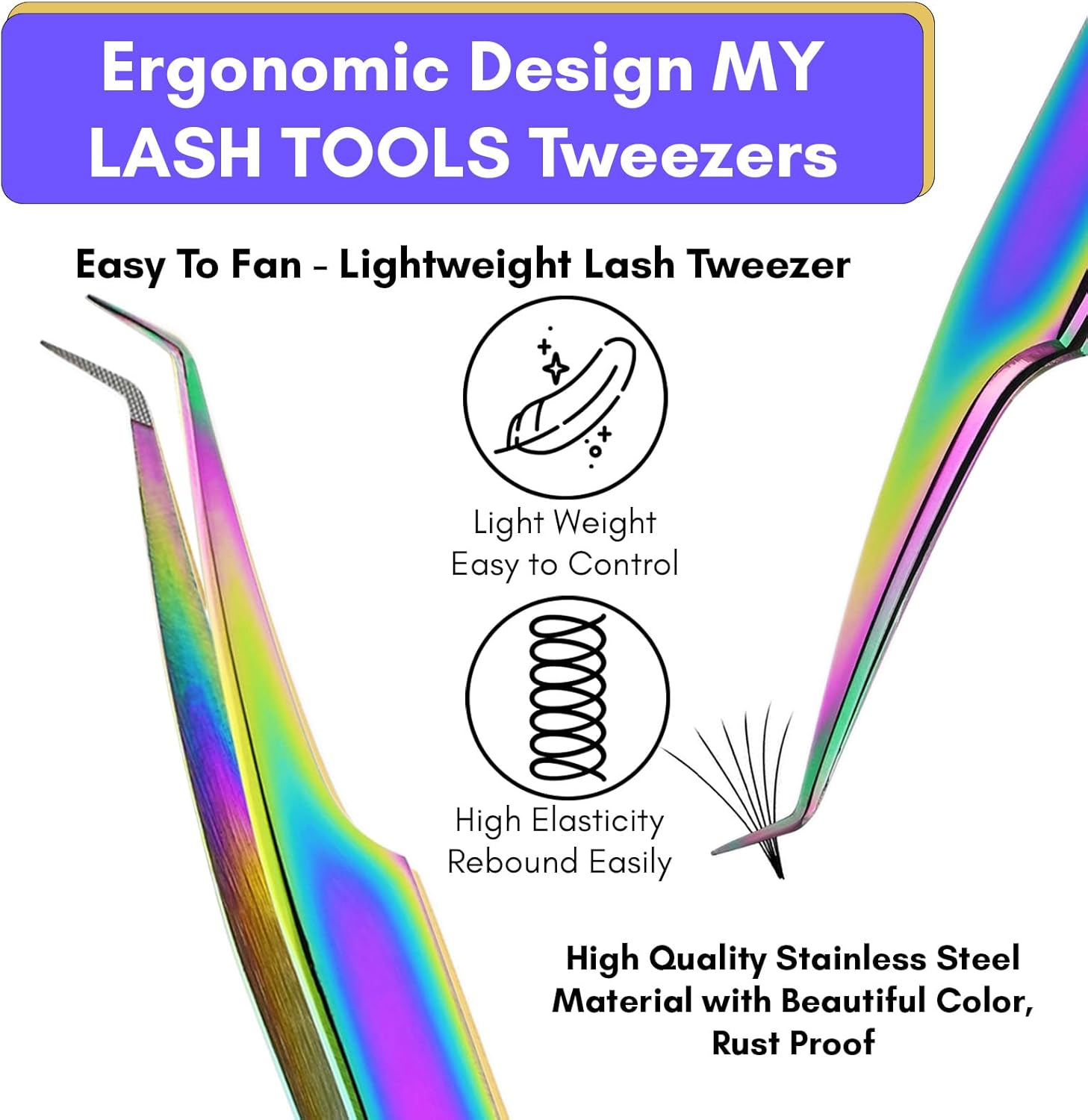 My Lash Tools Lash Tweezers For Eyelash Extension Precision Fiber Tip Lash Tweezers for Eyelash Extensions Curved 45 Degree Volume Tweezers for Women | Pro Stainless Steel Lashing Tweezers (Black)
